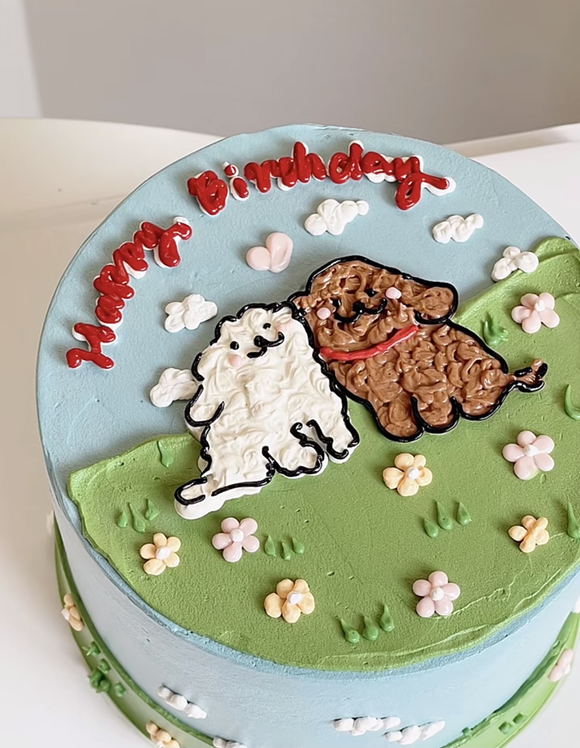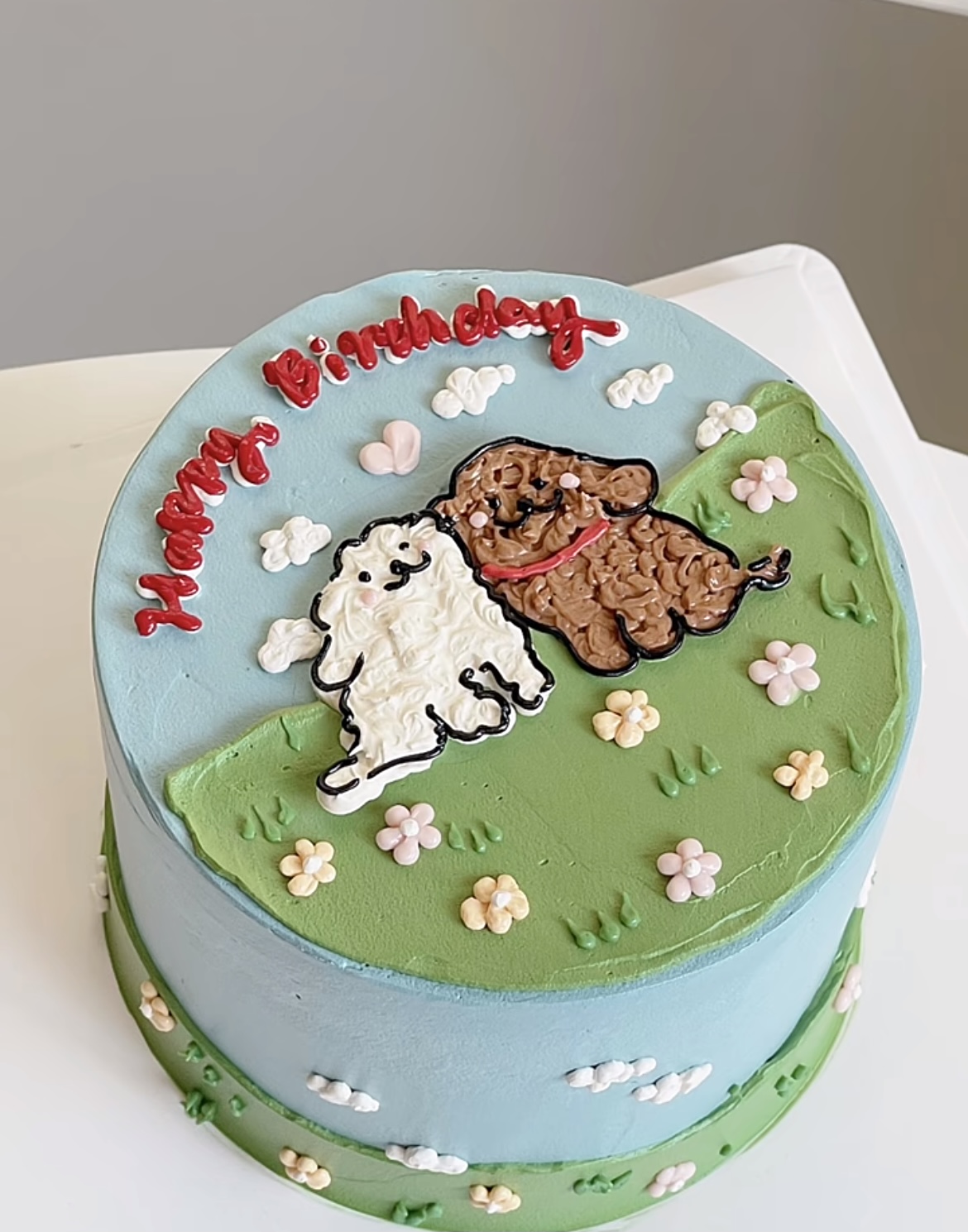 多款式~线条狗情侣情人节七夕手绘蛋糕-低糖处理无添加