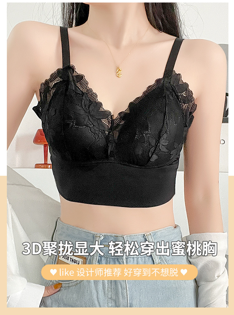 【第二件0元!法式性感蕾丝美背bra】性感美背文胸,无钢圈不闷勒!吊带蕾丝裹胸固定杯后排扣无痕防走光透气打底抹胸女