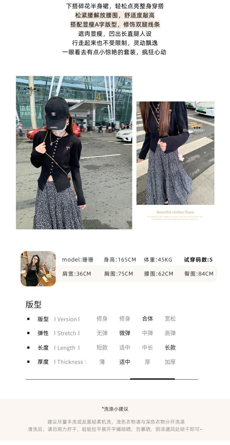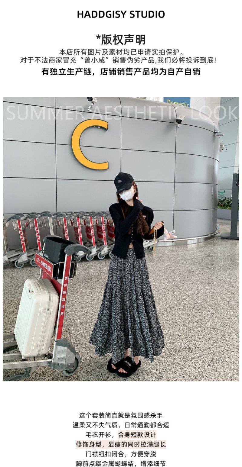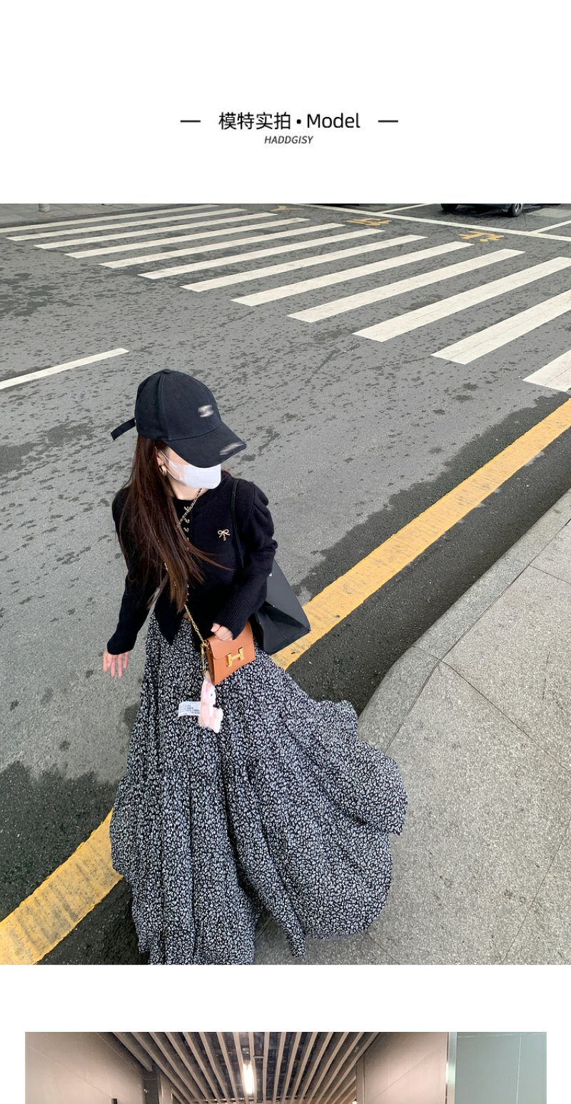 <曾小咸推荐>【心动邂逅】金属蝴蝶结毛衣+碎花百褶裙