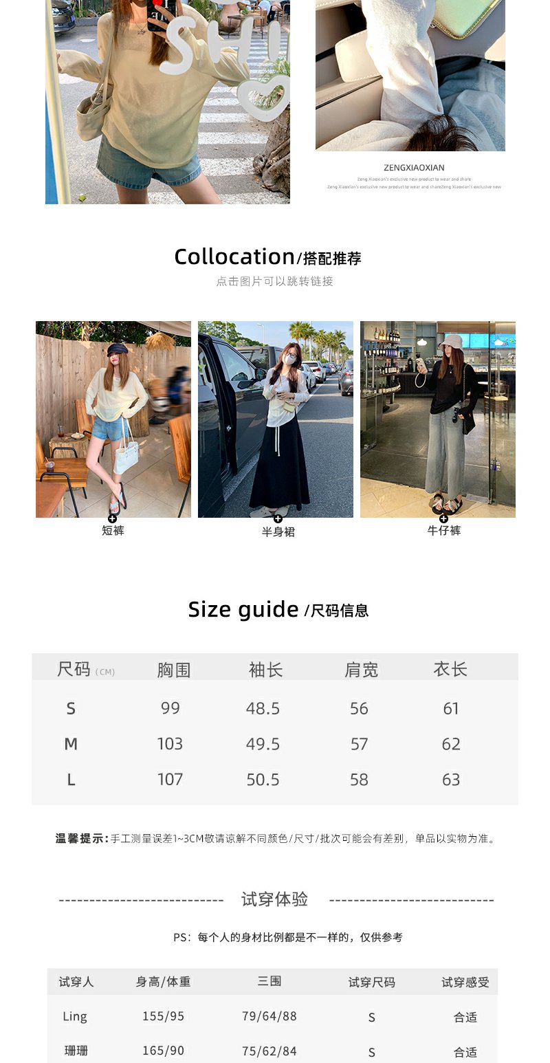 <曾小咸推荐>现货秒杀!微信超特价!3色韩系薄款长袖T恤 日常89.99 立减50 秒杀39.99!半裙秒杀79.99!!