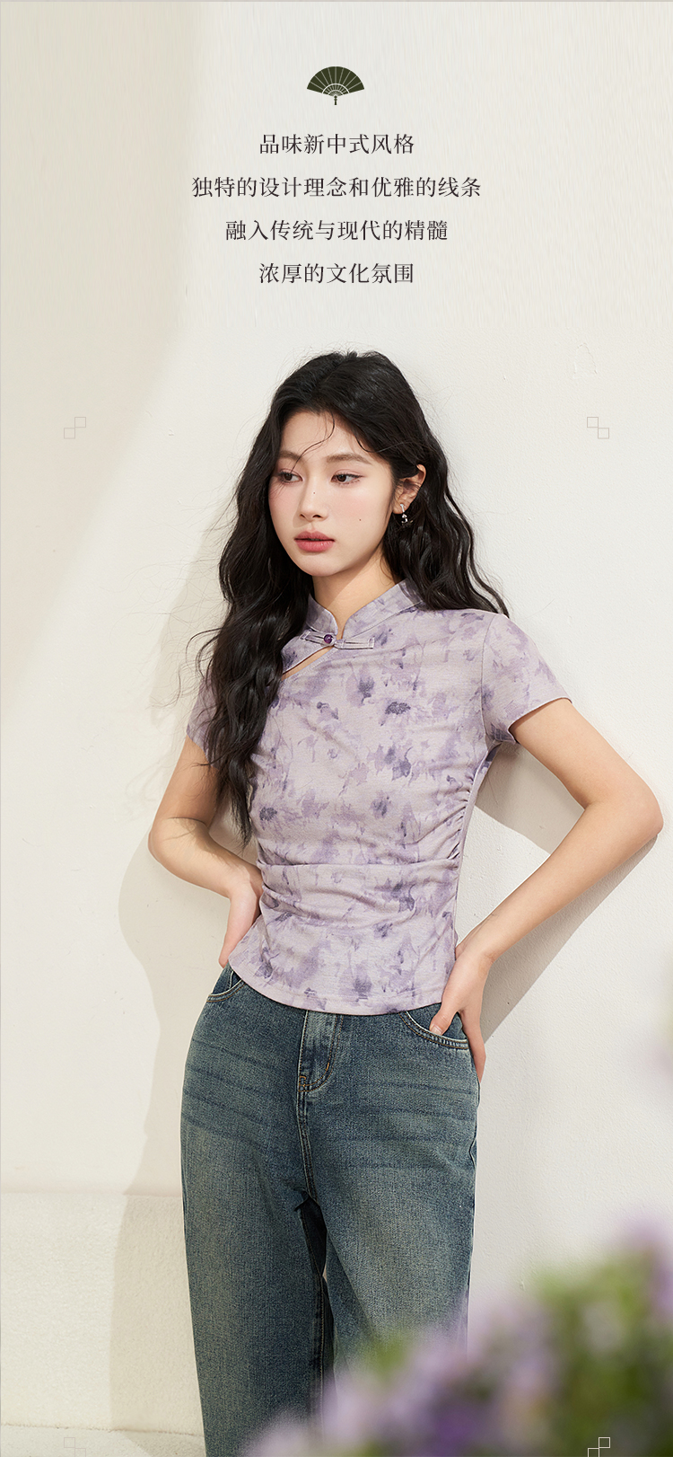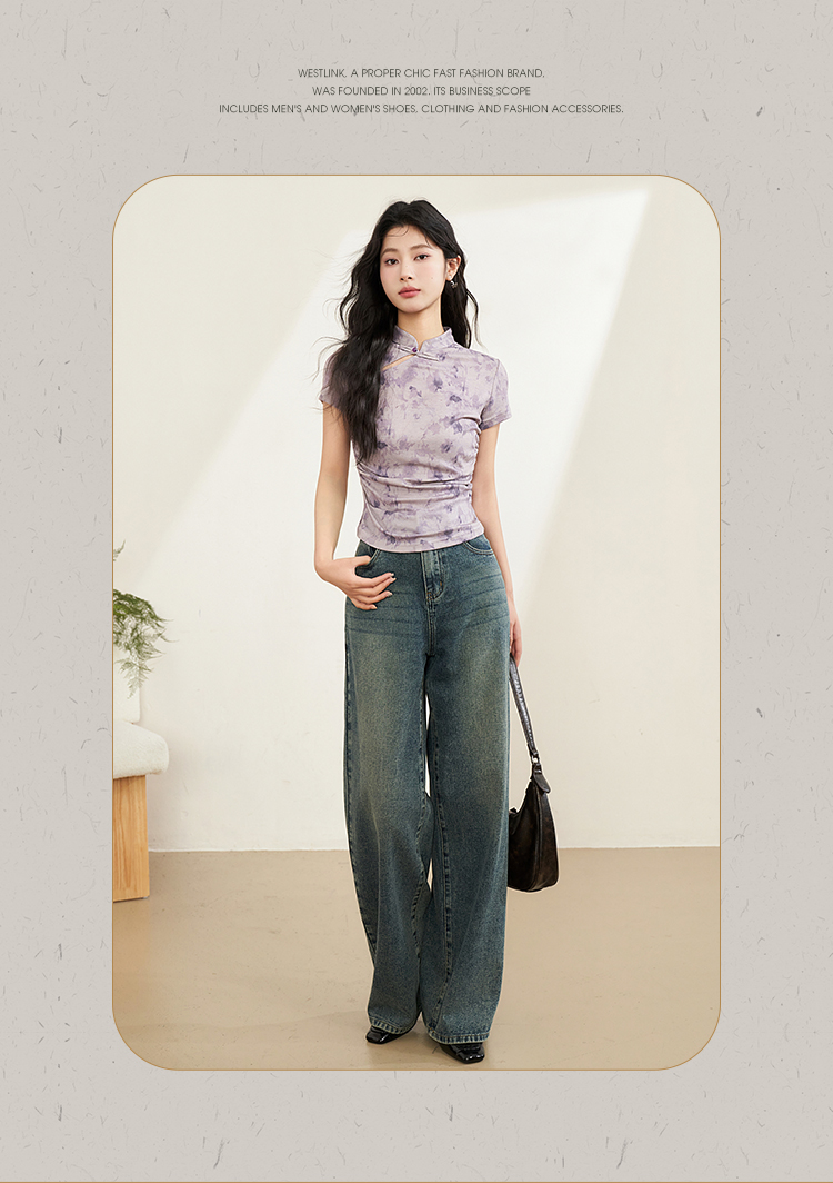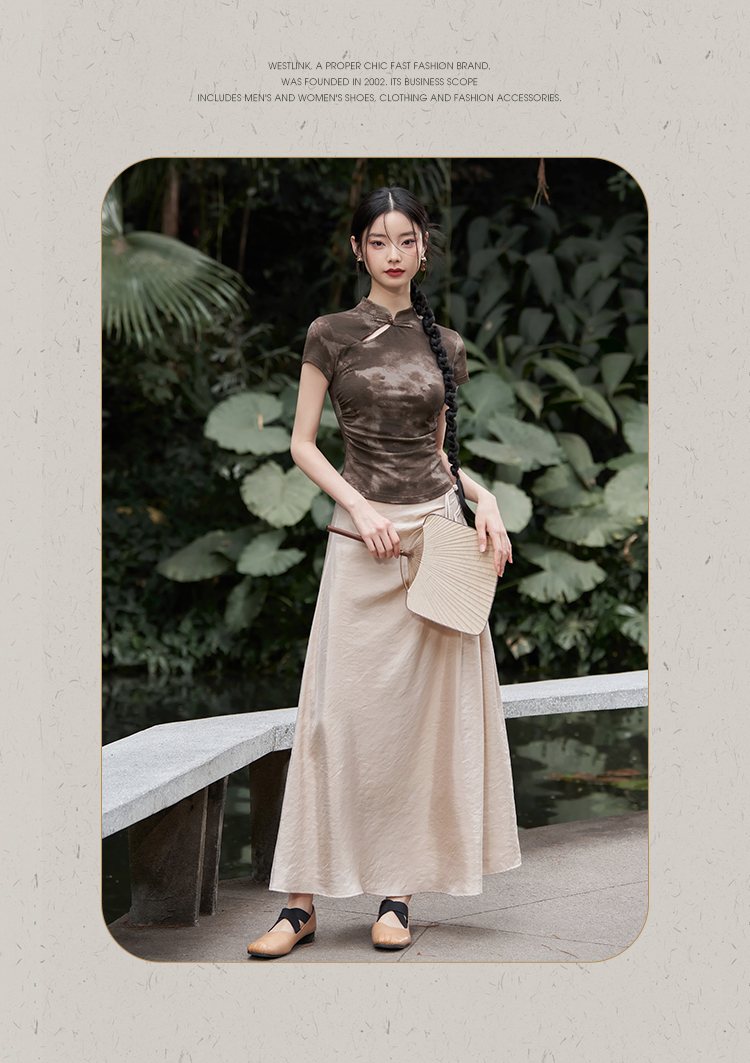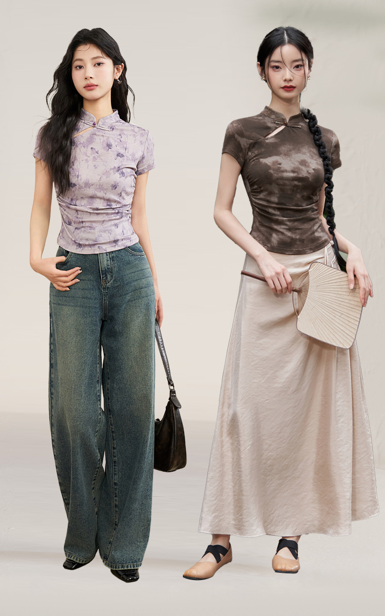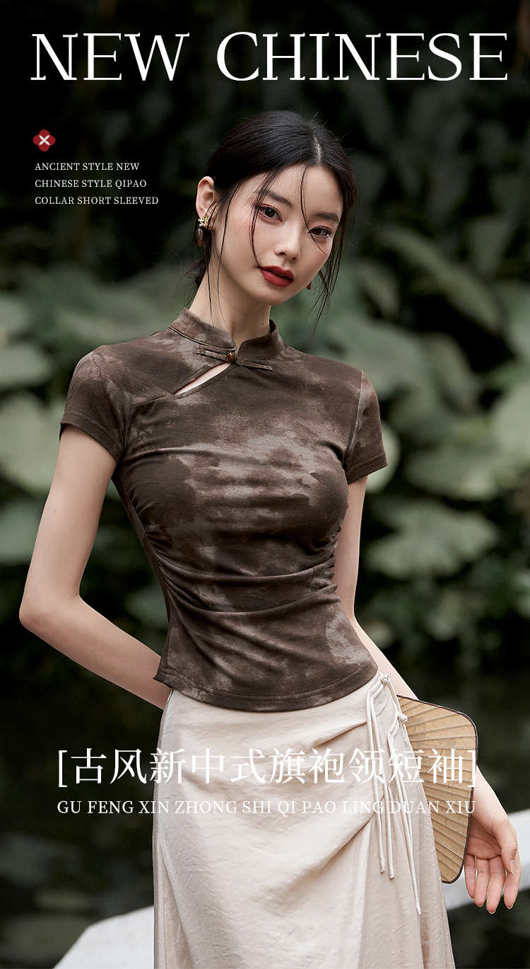 西遇紫色新中式古风设计短袖女新款纯棉透气舒适咖色T恤10740174/V0050549