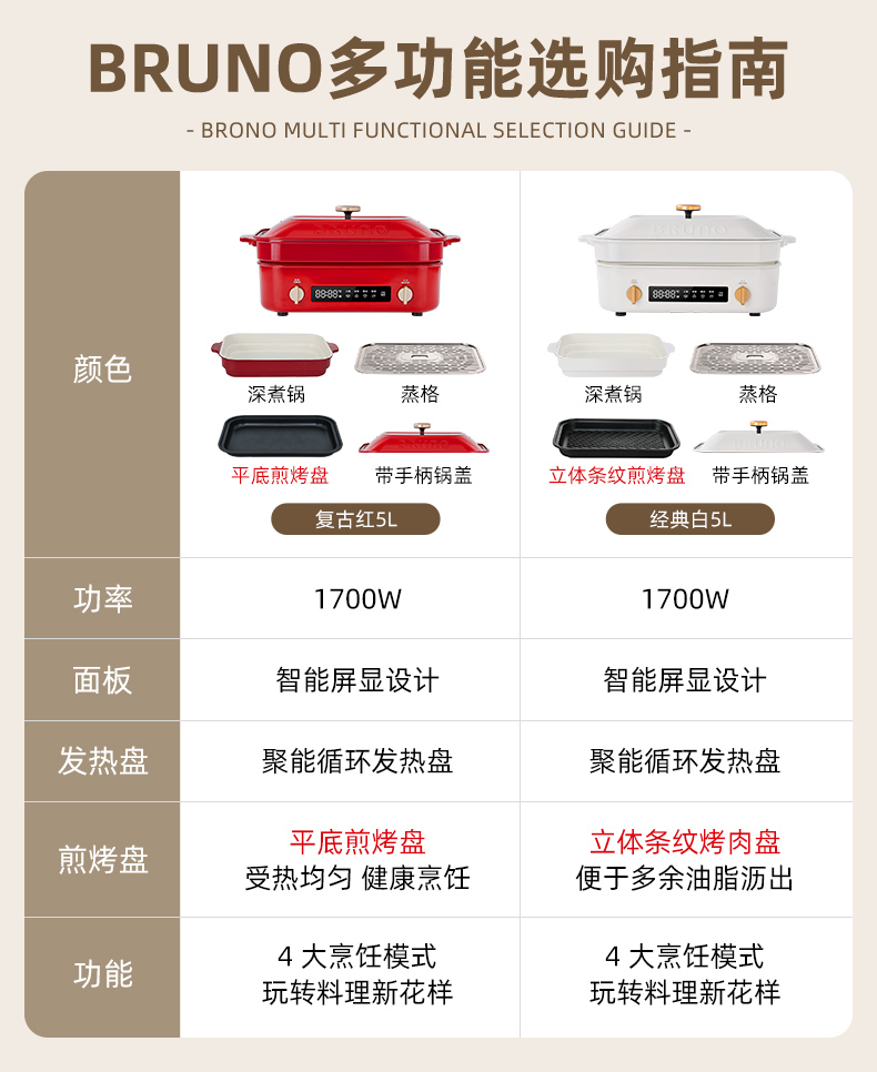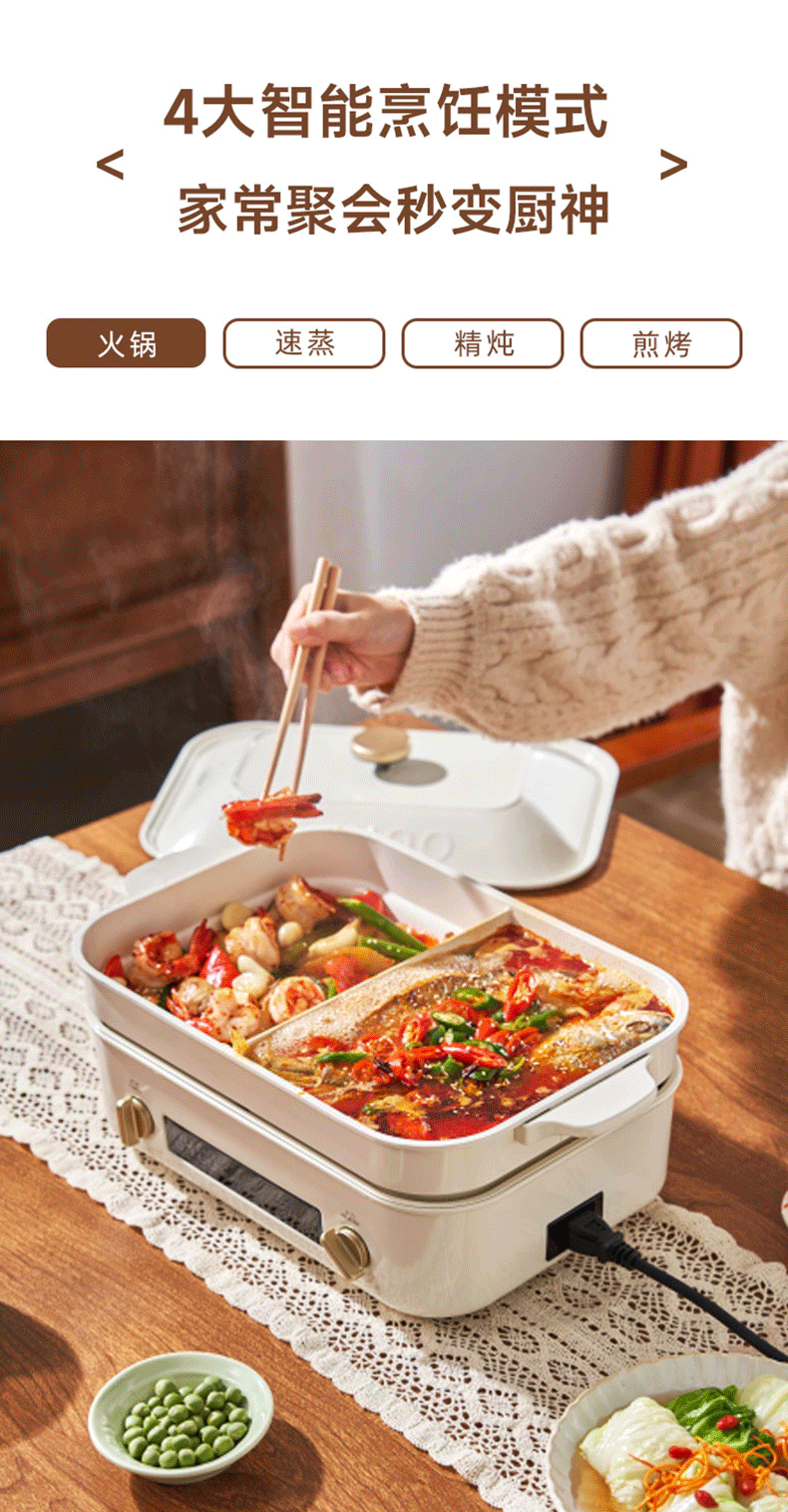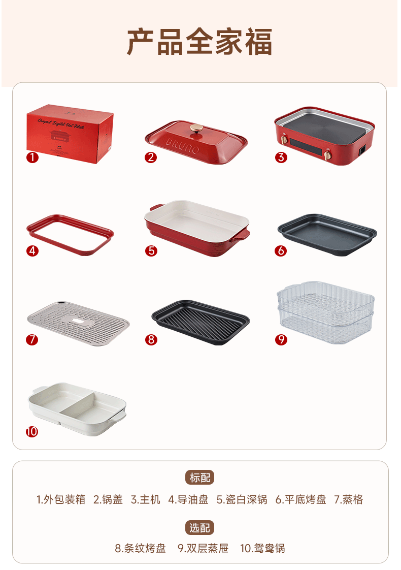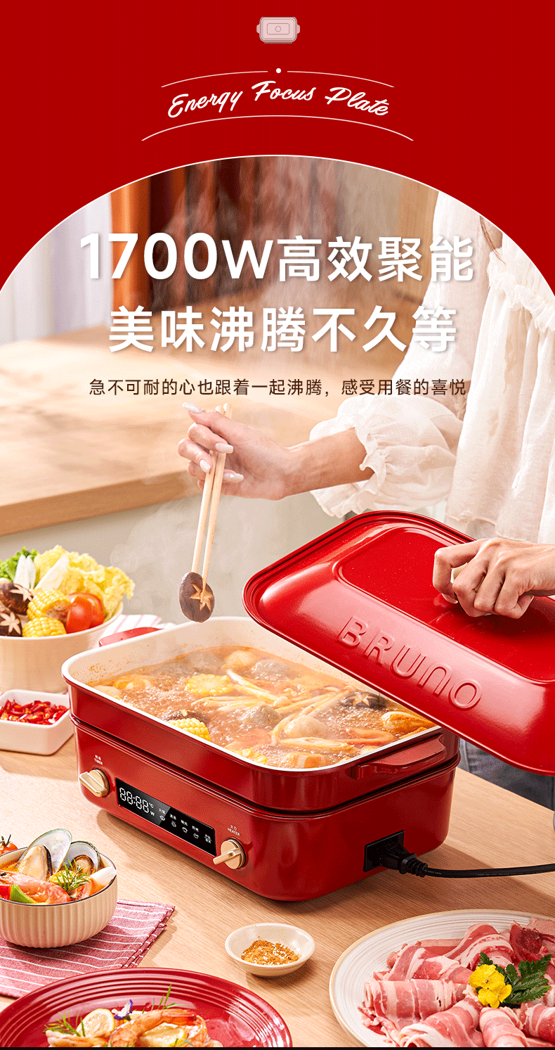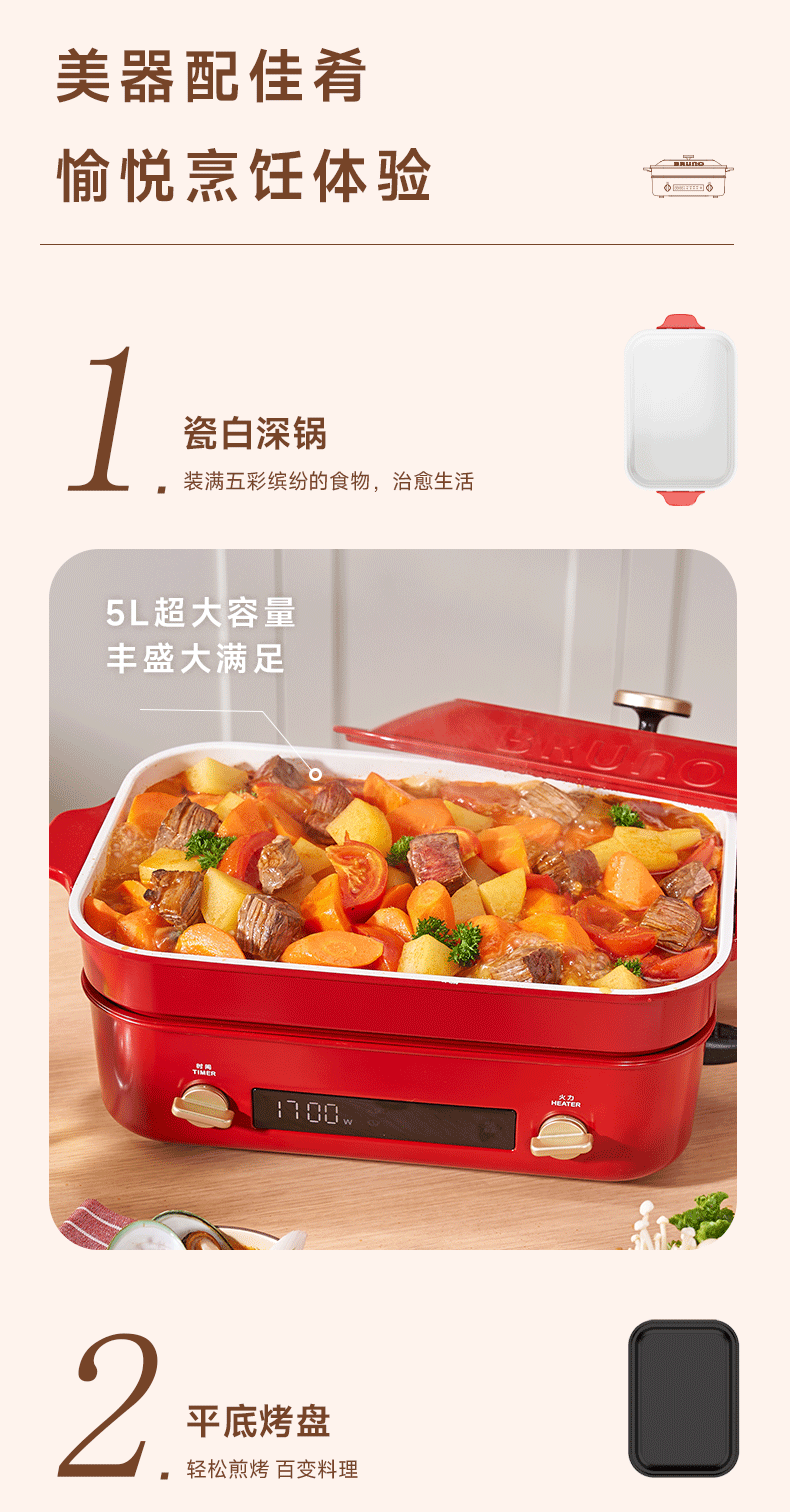 【进口多功能锅合集】日本BRUNO二代多功能料理锅鸳鸯火锅蒸煮炒煎涮一体家用电烤肉锅