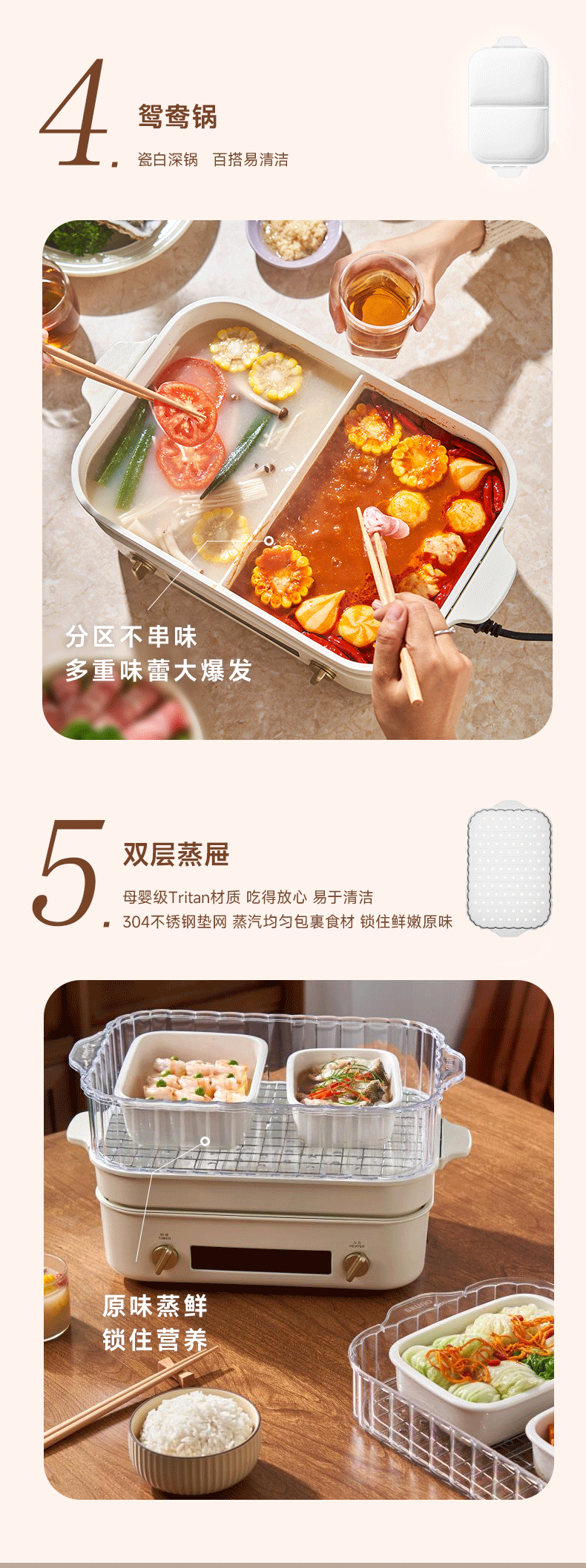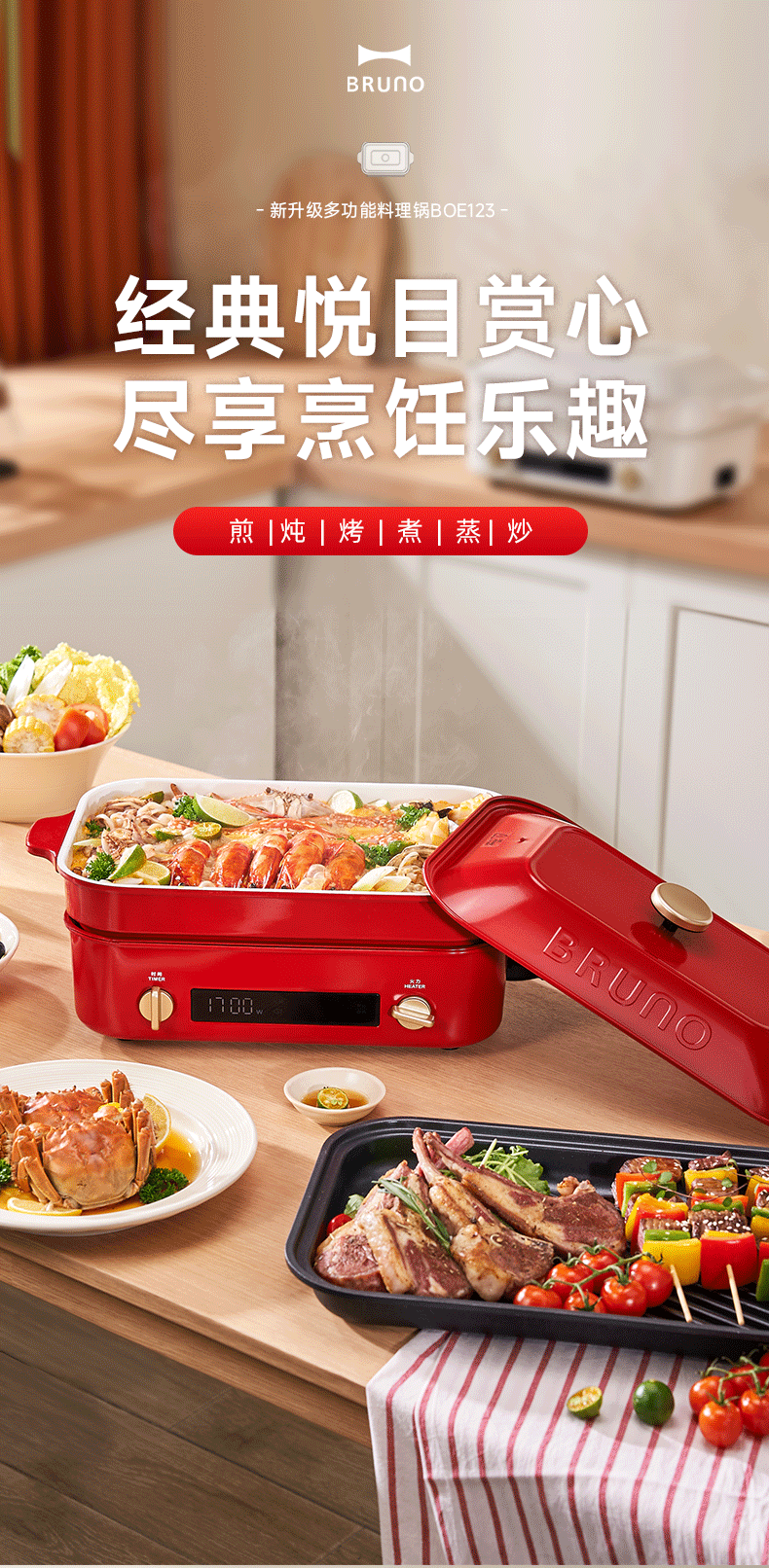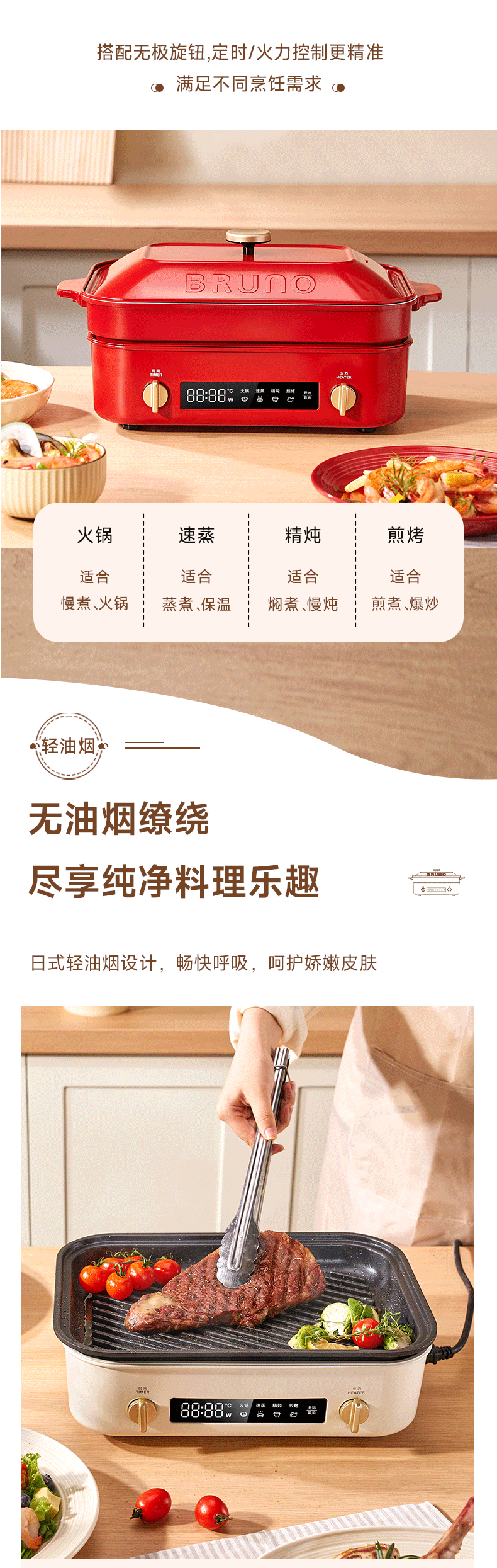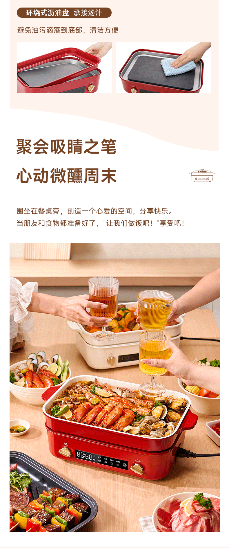 【进口多功能锅合集】日本BRUNO二代多功能料理锅鸳鸯火锅蒸煮炒煎涮一体家用电烤肉锅