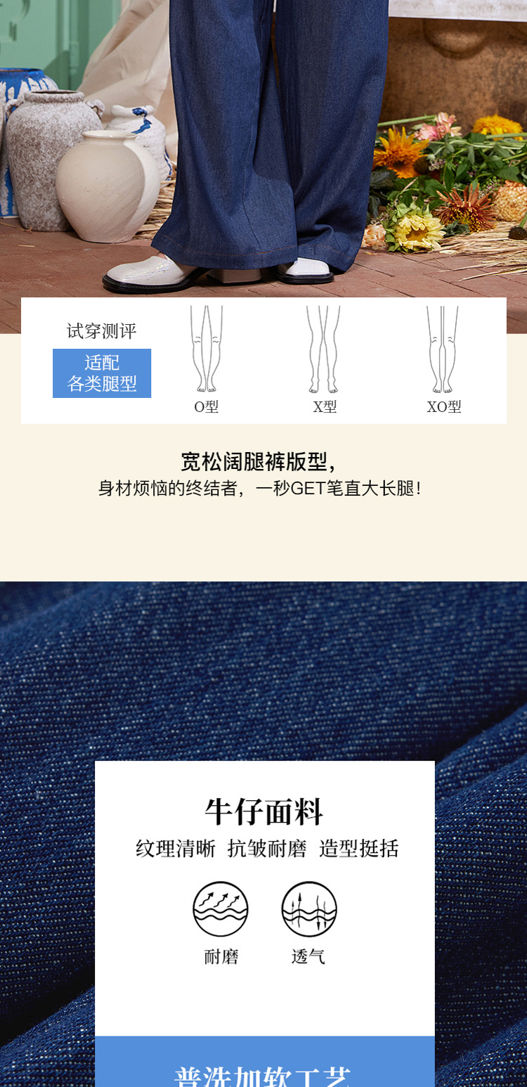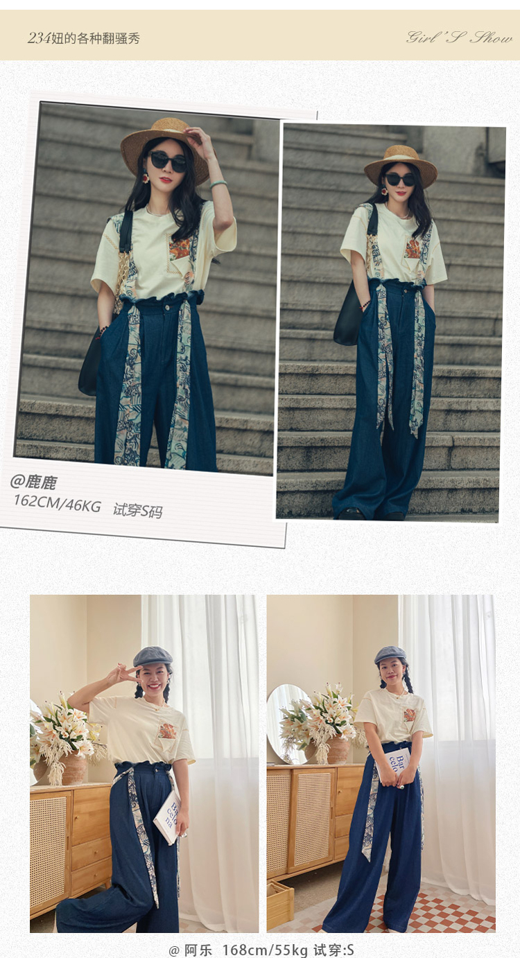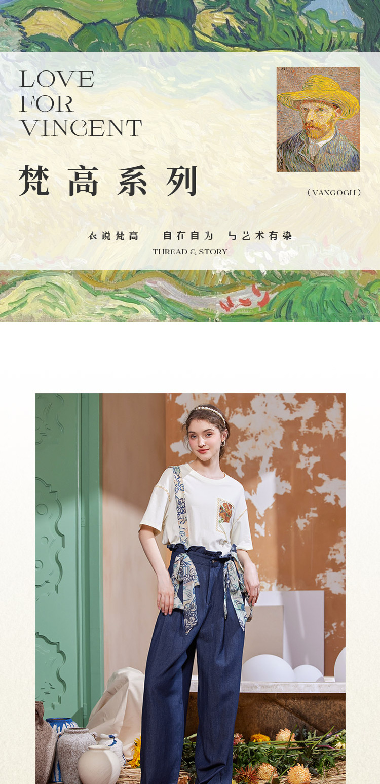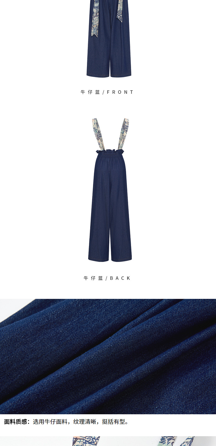 两三事梵高 穿花引蝶 2025年新款复古印花布背带牛仔裤女宽松
