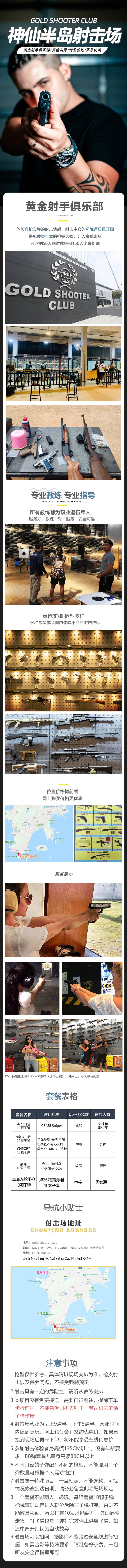 2.以上价格按子弹加基础枪支计算,如果需要升级枪型,需在在现场补升级枪型费用。(100-500泰铢不等,以现场咨询为准);3.预定的时候,请把日期和时间一起写清楚;4.此产品为特殊产品,一经预定成功后,就不可以取消;5.到达中心之后,工作人员会简单的教授您如何安全使用。6.射击中心谷歌定位:https://goo.gl/maps/7NBA82XarNPDiSHj8, 地址:160/1 Moo 6 T.Rawai Muang Phuket