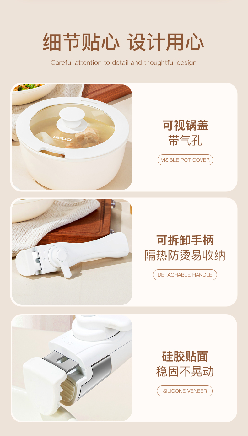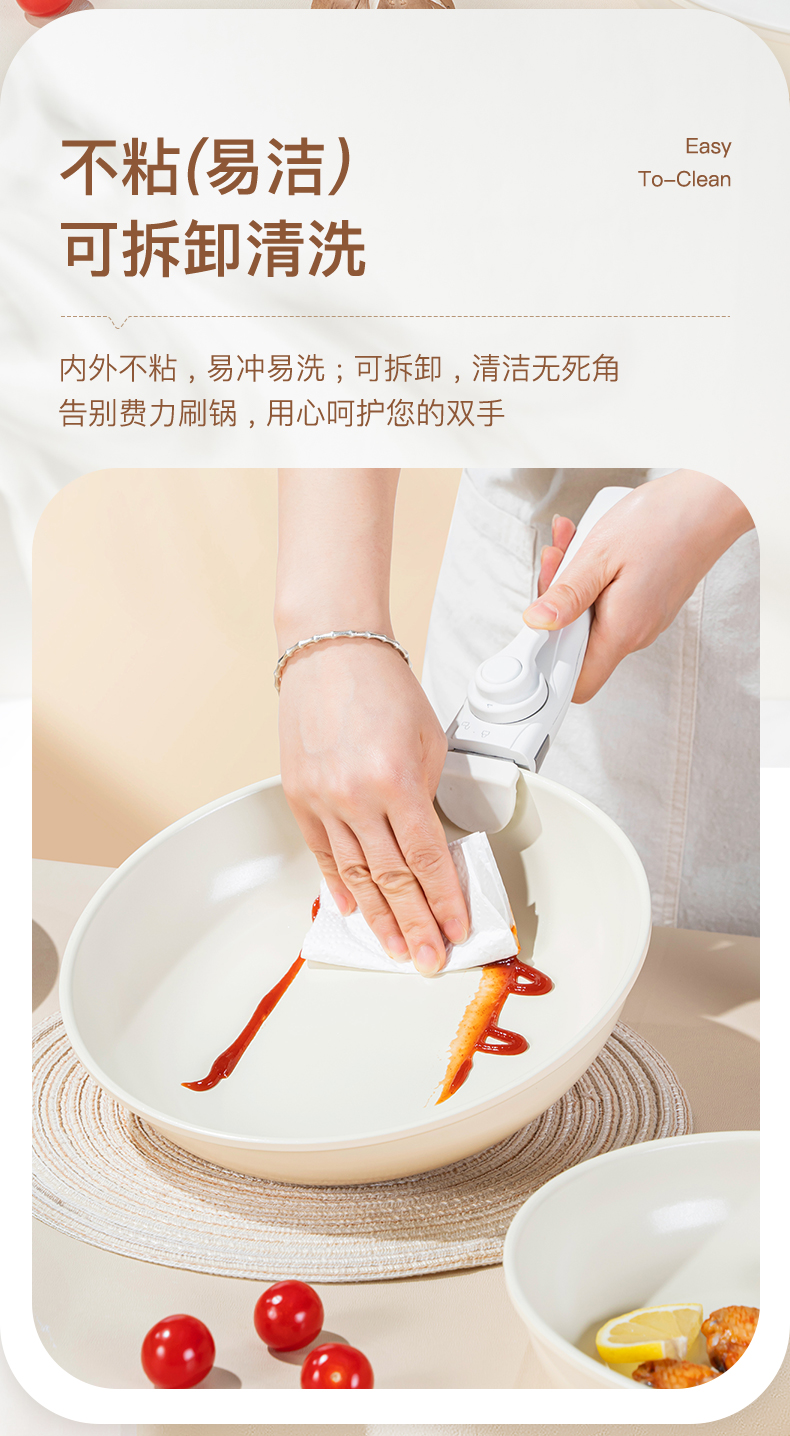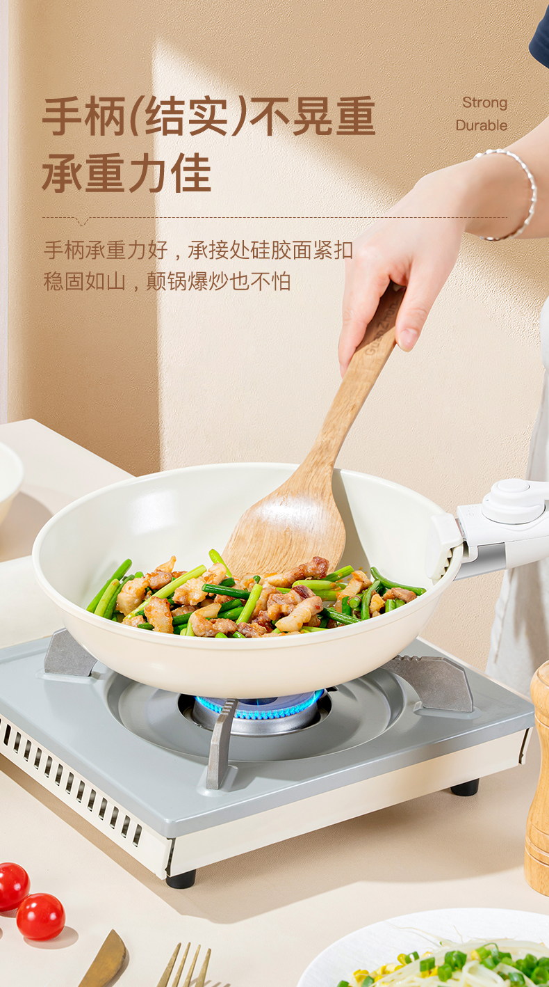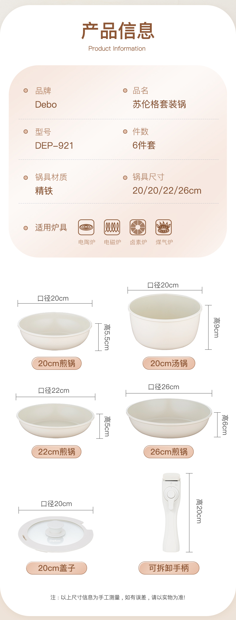 配置:煎盘*3、汤锅*1、玻璃盖*1、可拆卸手柄*1
