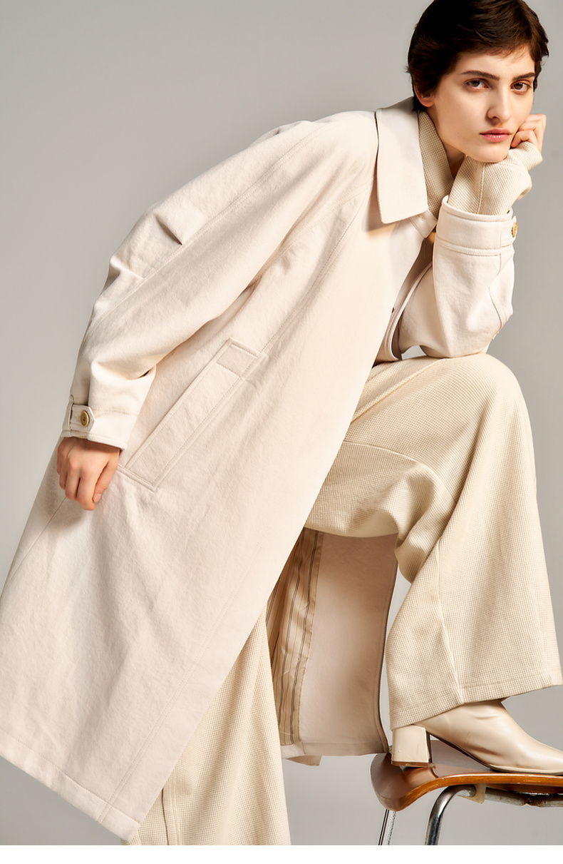 谜底H型长款风衣女士2024秋季新品通勤风简约宽松外套243ME1012