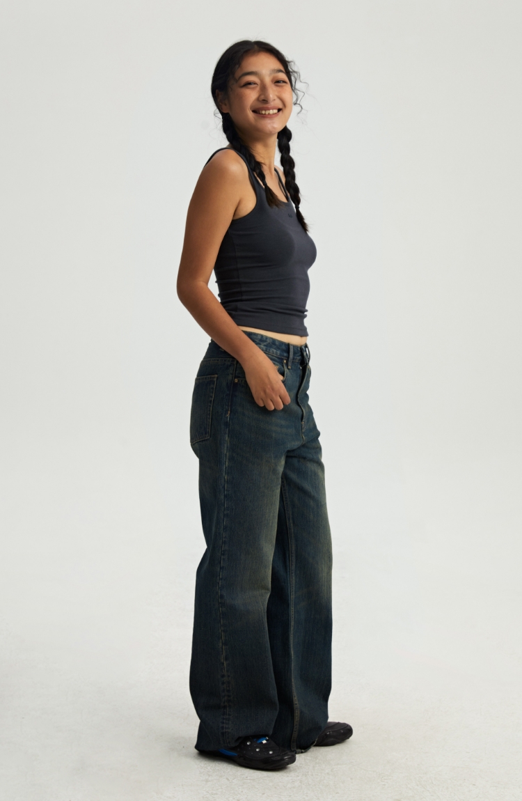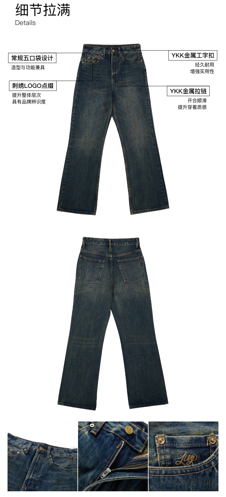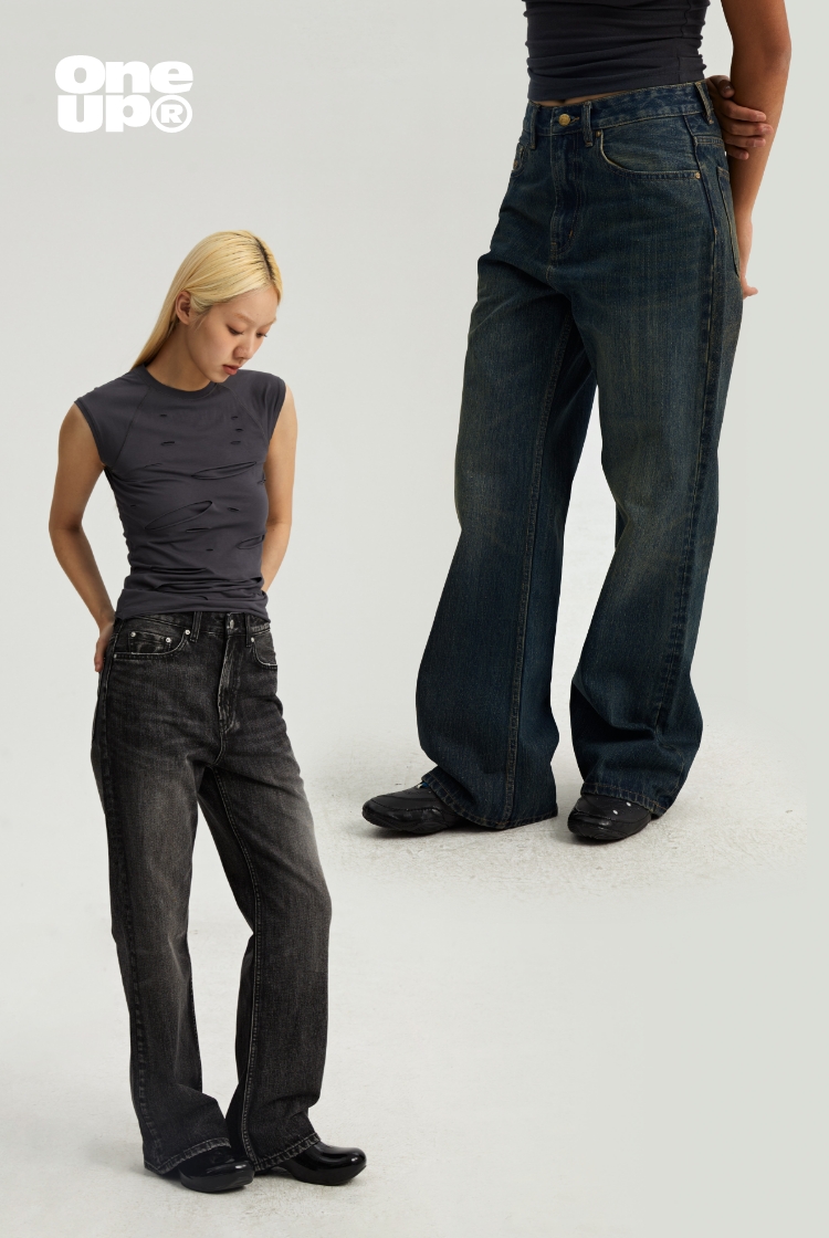 oneup做旧牛仔裤