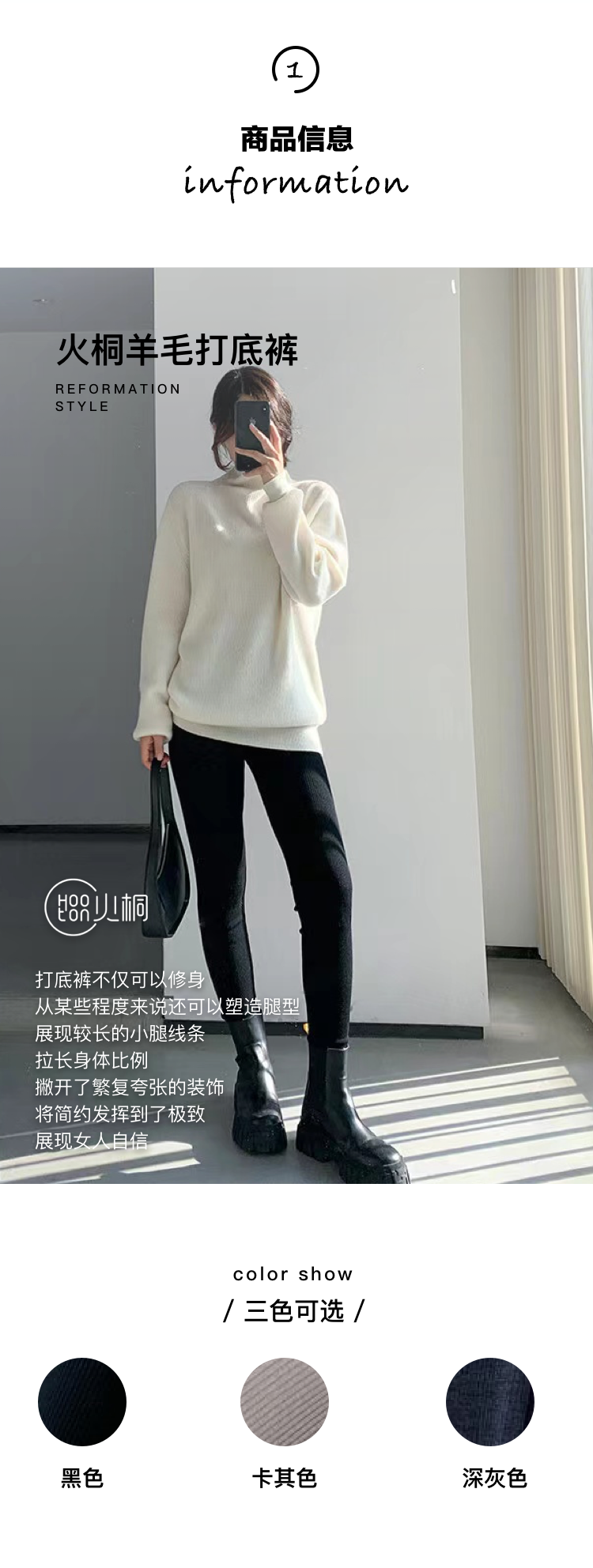 火桐hooton 万能百搭 进口美丽诺绵羊毛打底裤4001