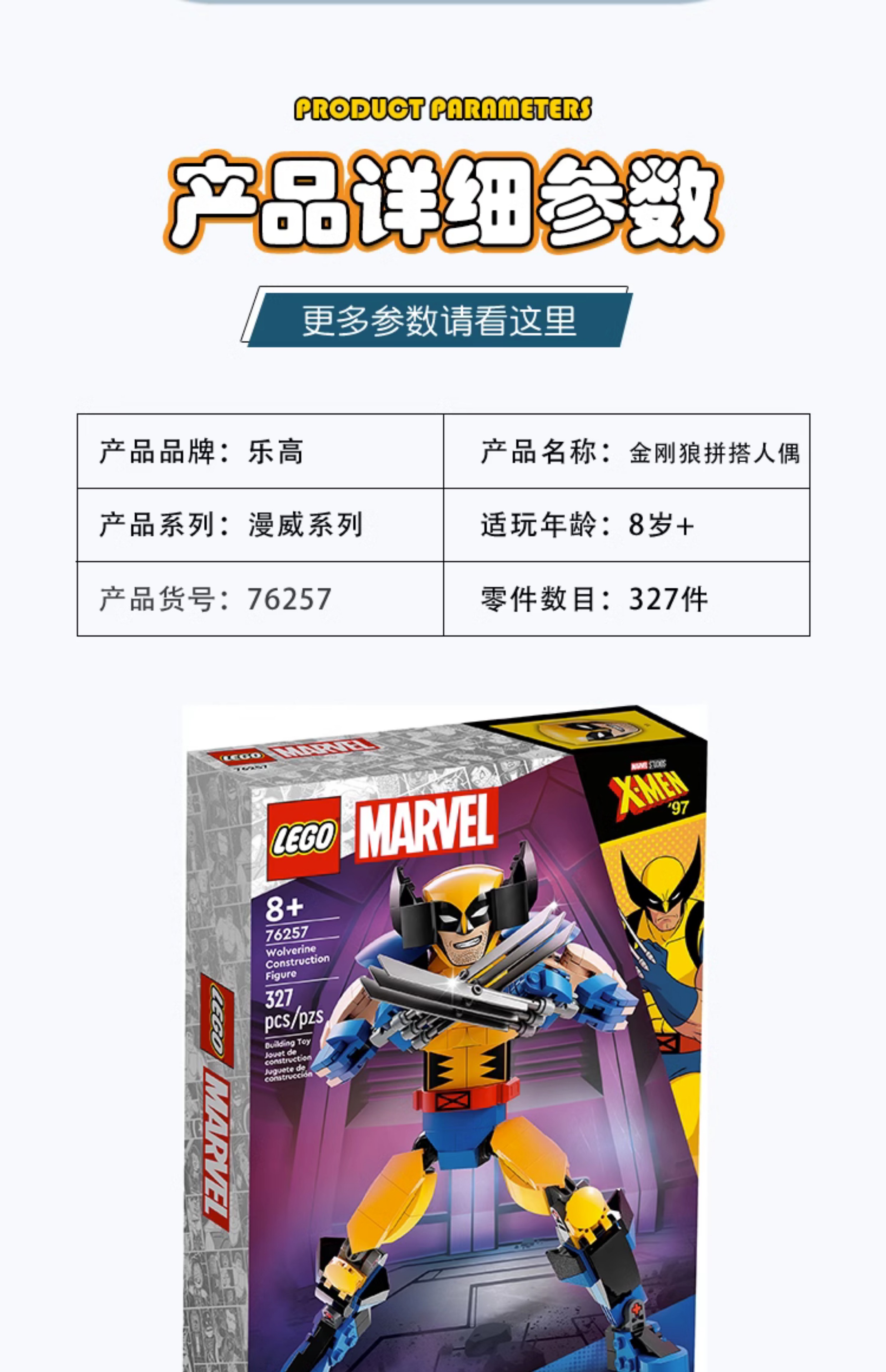 乐高积木L76257乐高超级英雄系列金刚狼拼搭人偶