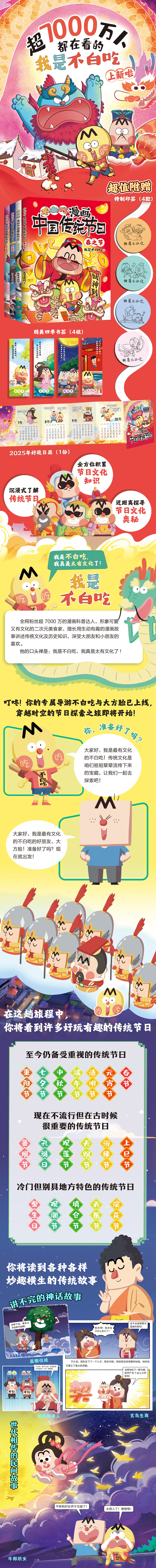 《漫画中国传统节日》全4册 7-10岁 沉浸式了解中国传统节日 全方位积累节日文化知识 近距离探寻节日文化奥秘 “一起来过节”情景互动 赠:4张精美四季书签、2025年手折月历