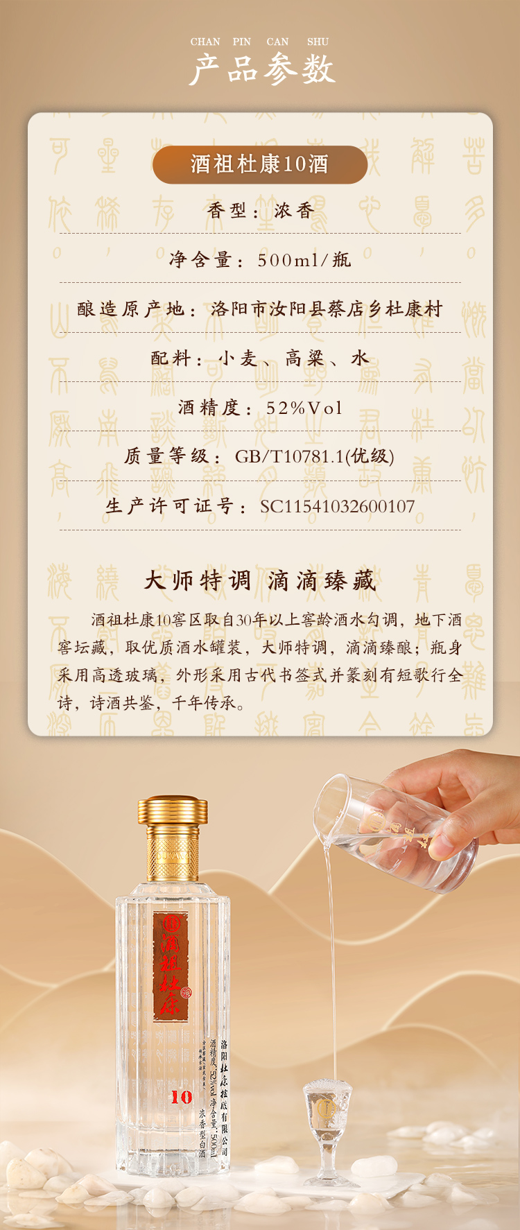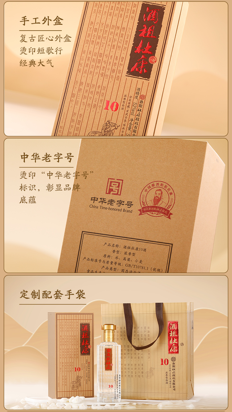 杜康酒祖10浓香型 52度白酒 老池酿造 送礼高端酒500mL6瓶整箱装
