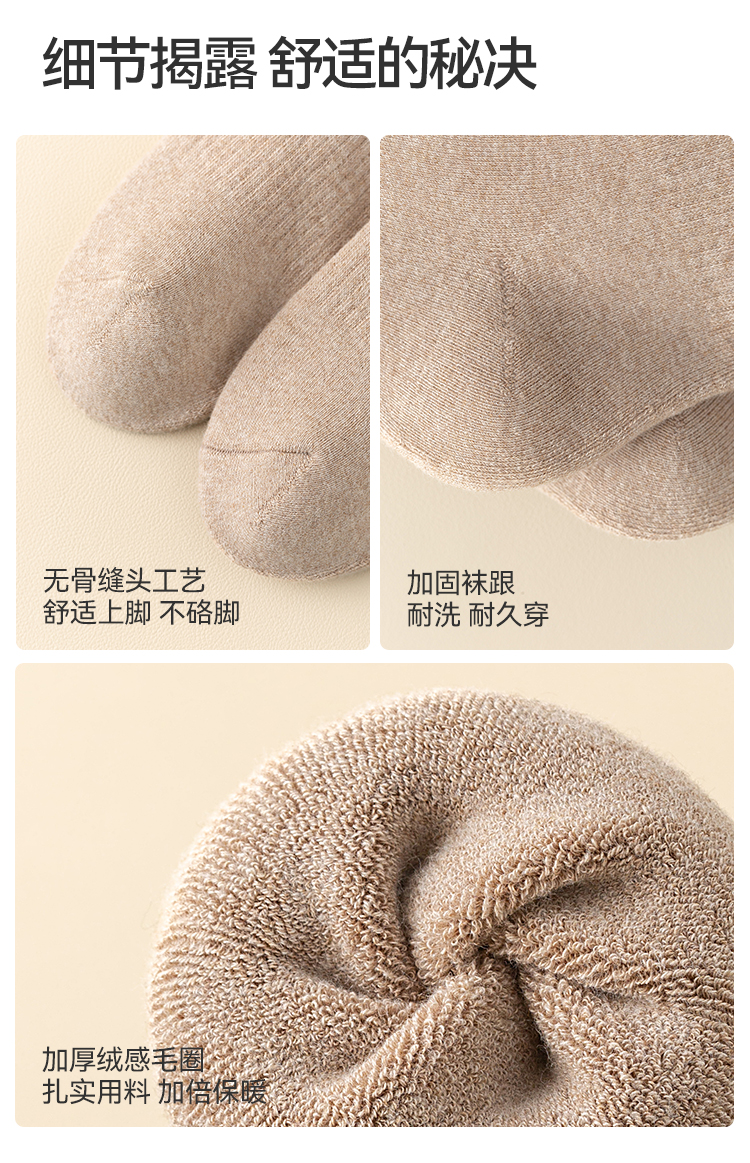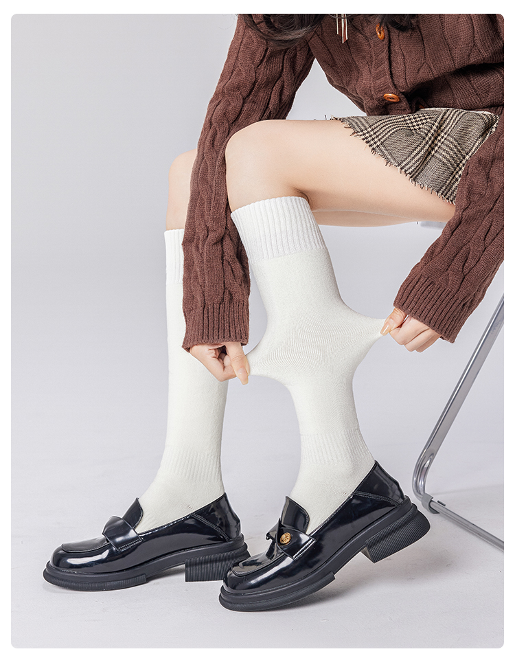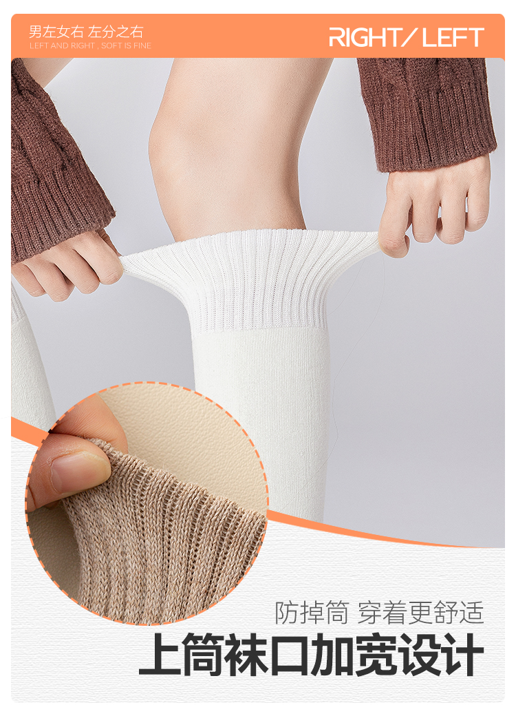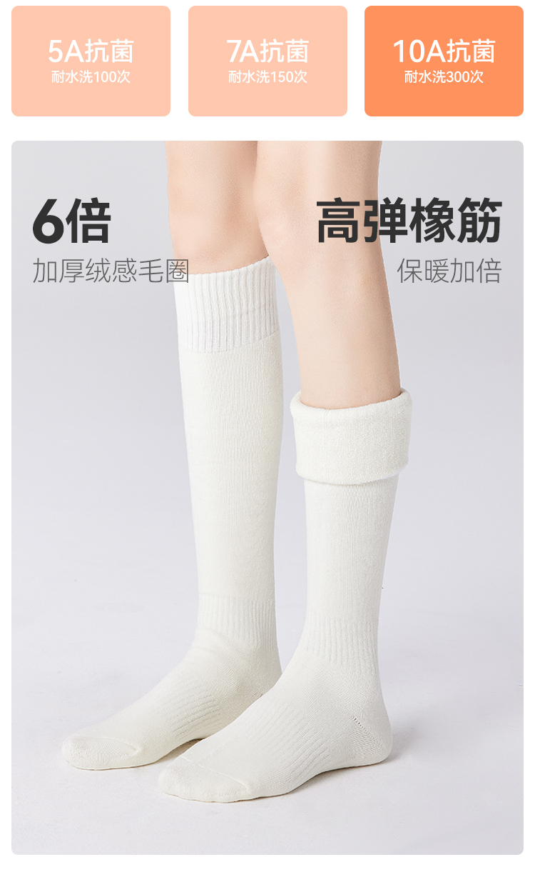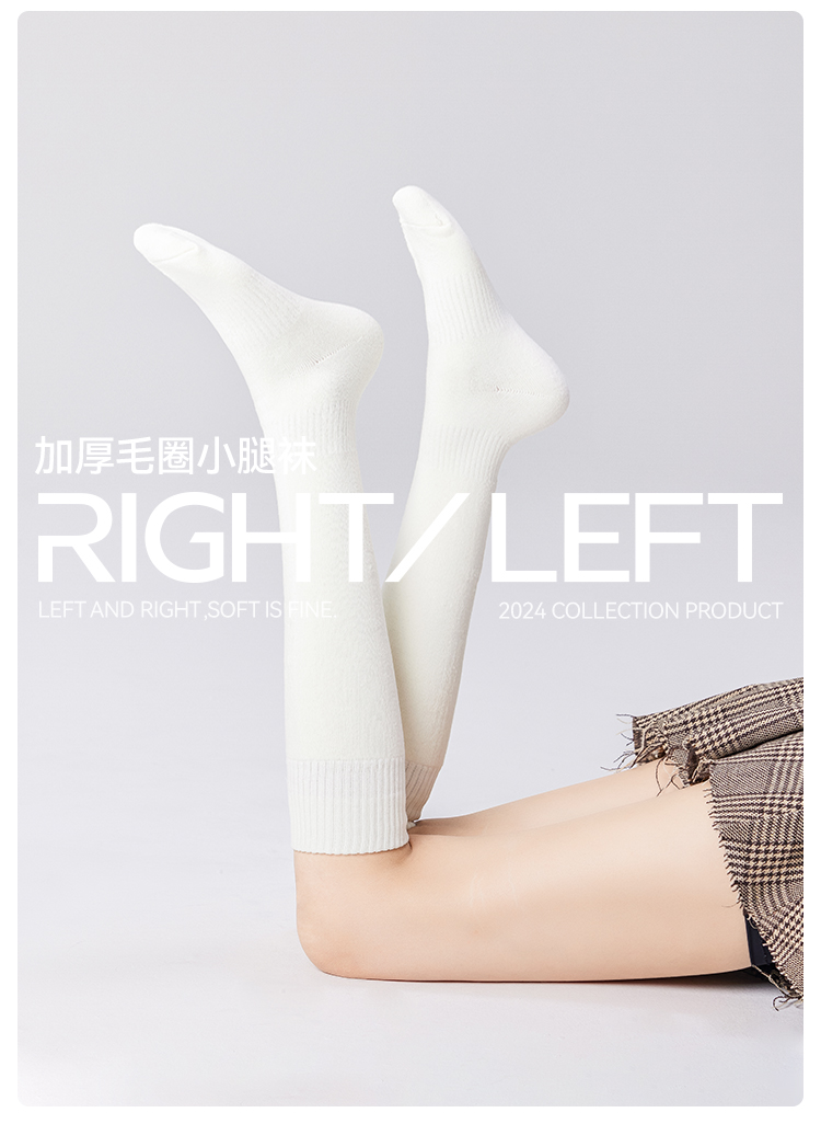 左分之右秋冬季加绒加厚保暖毛圈10A抗菌防臭小腿袜纯色简约长袜