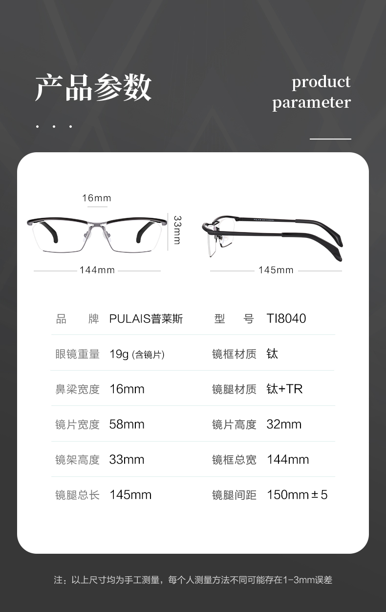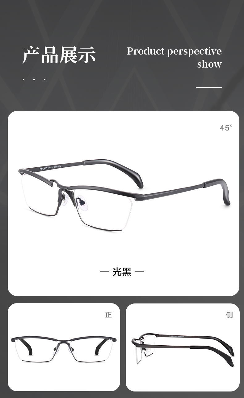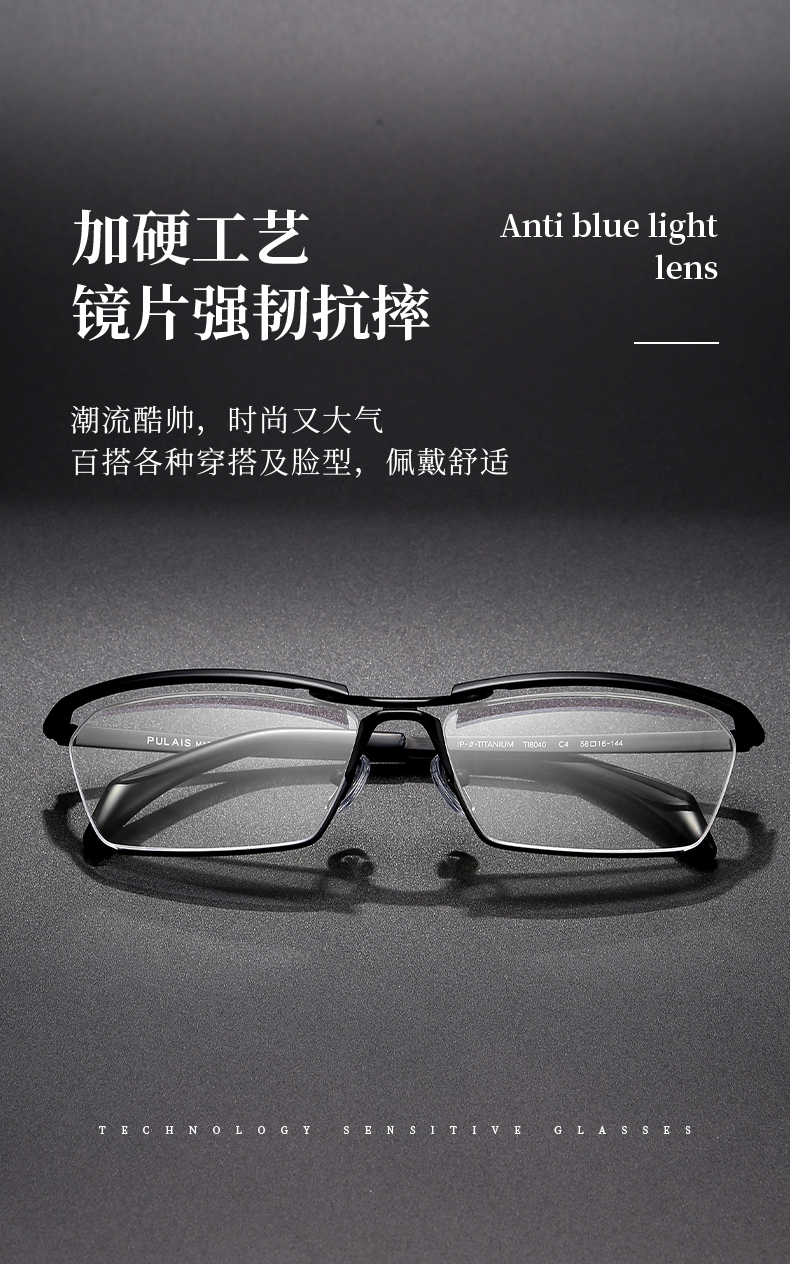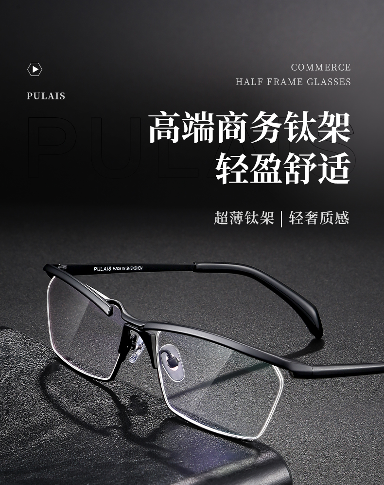 普莱斯光学镜架TI8040 高端商务半框钛架 轻盈舒适眉线大框 三色可选