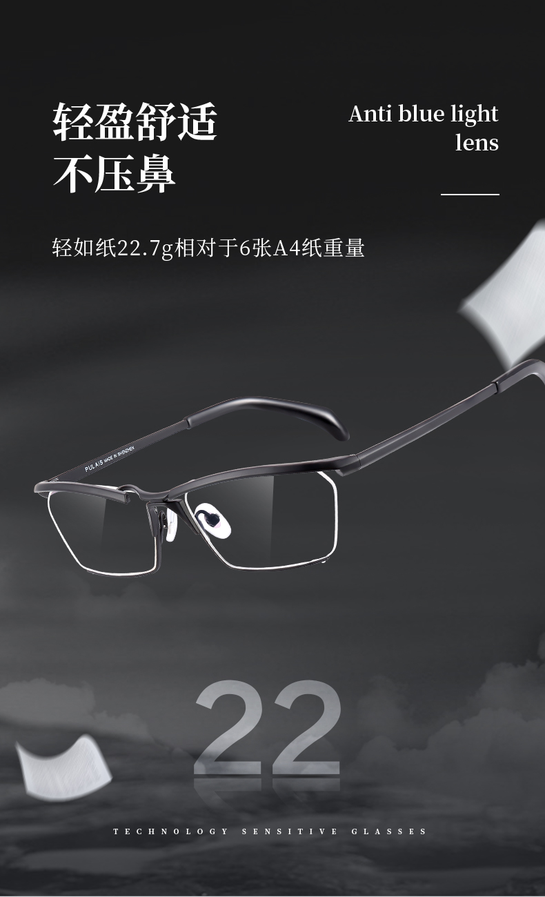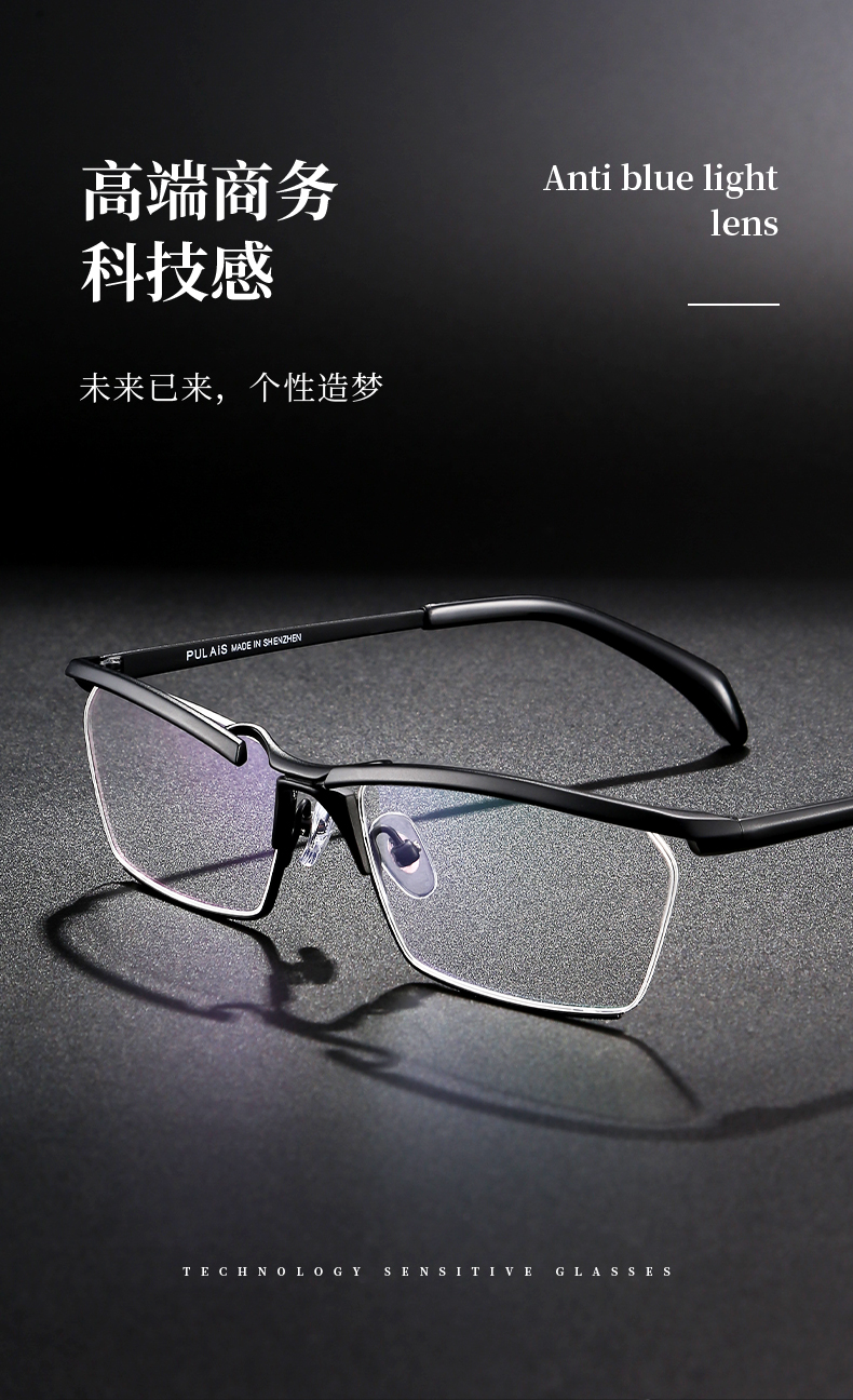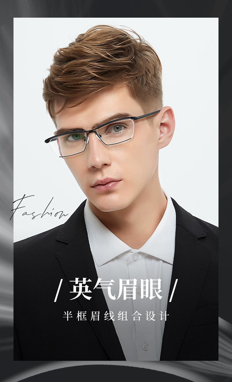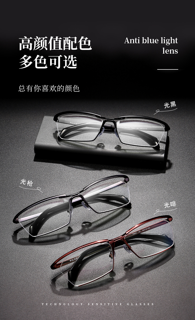 普莱斯光学镜架TI8040 高端商务半框钛架 轻盈舒适眉线大框 三色可选