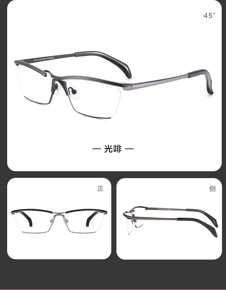 普莱斯光学镜框D3034 经典全框 半钛材质 舒适鼻托 稳固桩头 复古休闲 三色可选