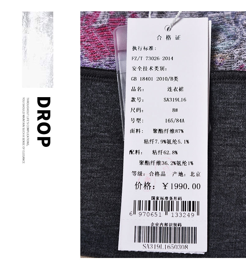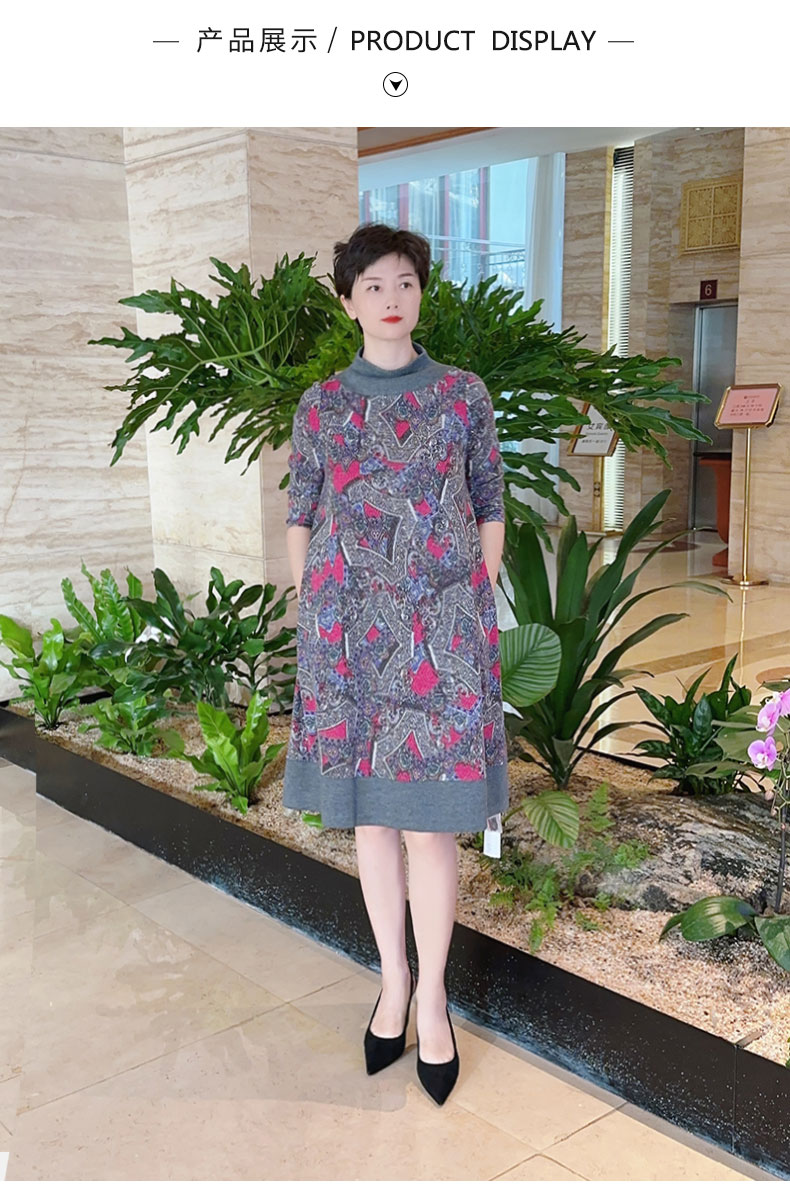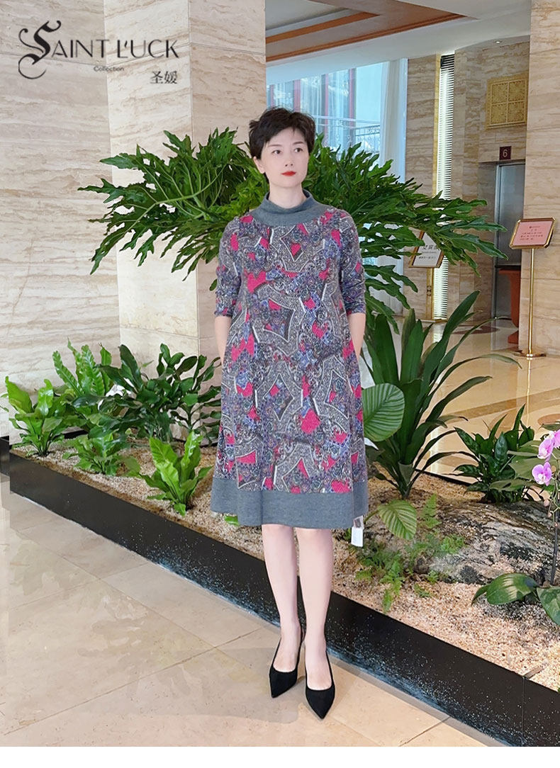 SAINT L’UCK/圣媛女装秋季中长款高领花色连衣裙SA319L16