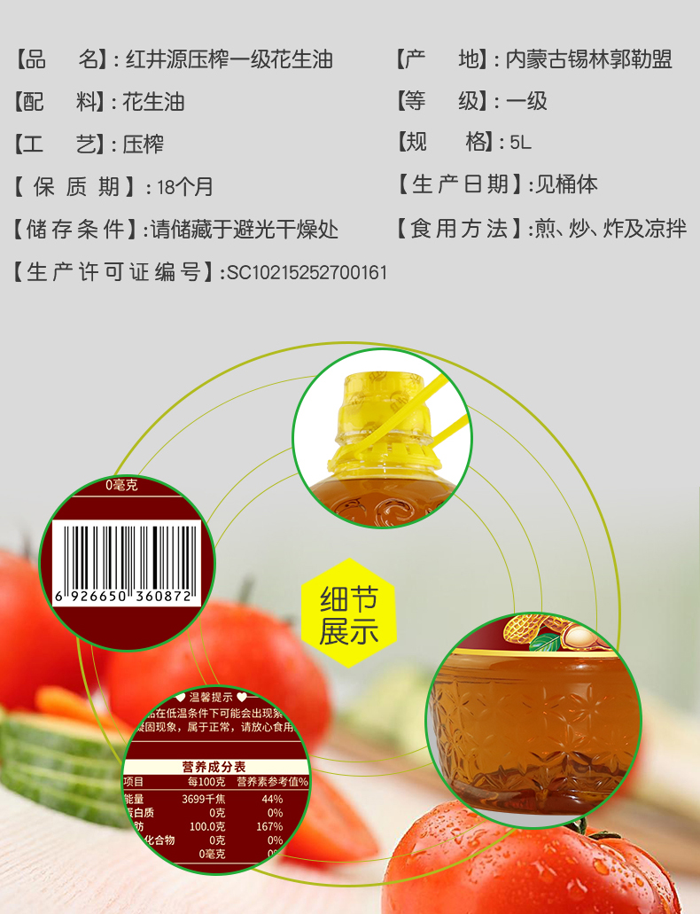 红井源花生油5L桶(内蒙古老字号)【XPTX】