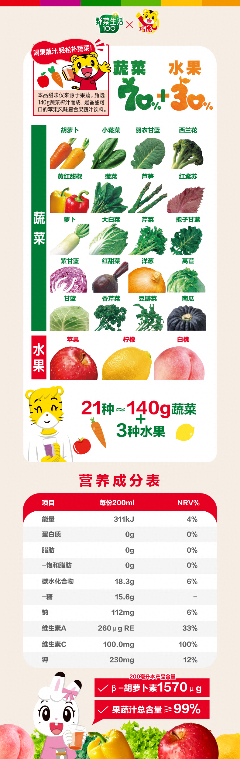 可果美胡萝卜苹果果蔬汁200ml