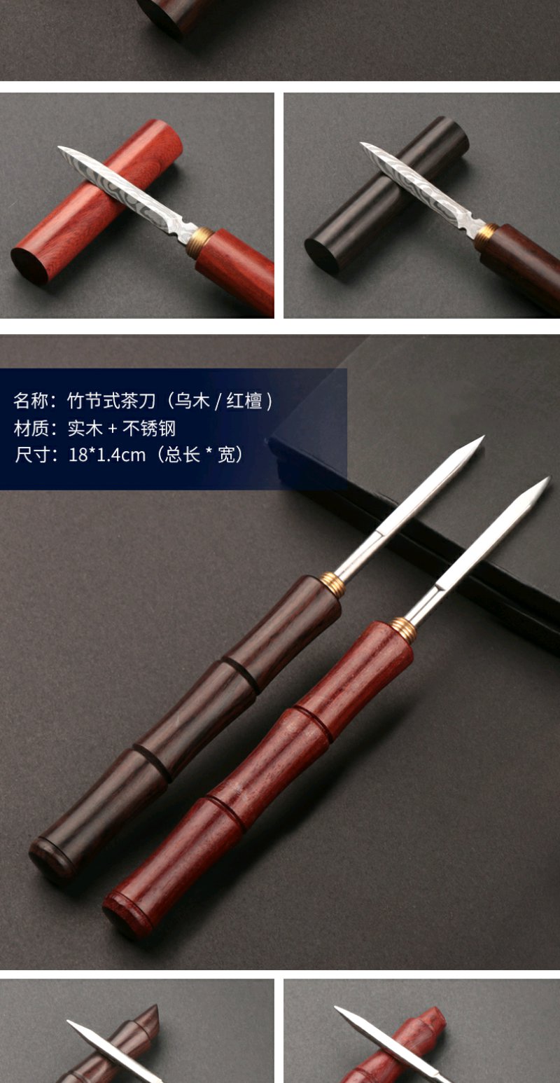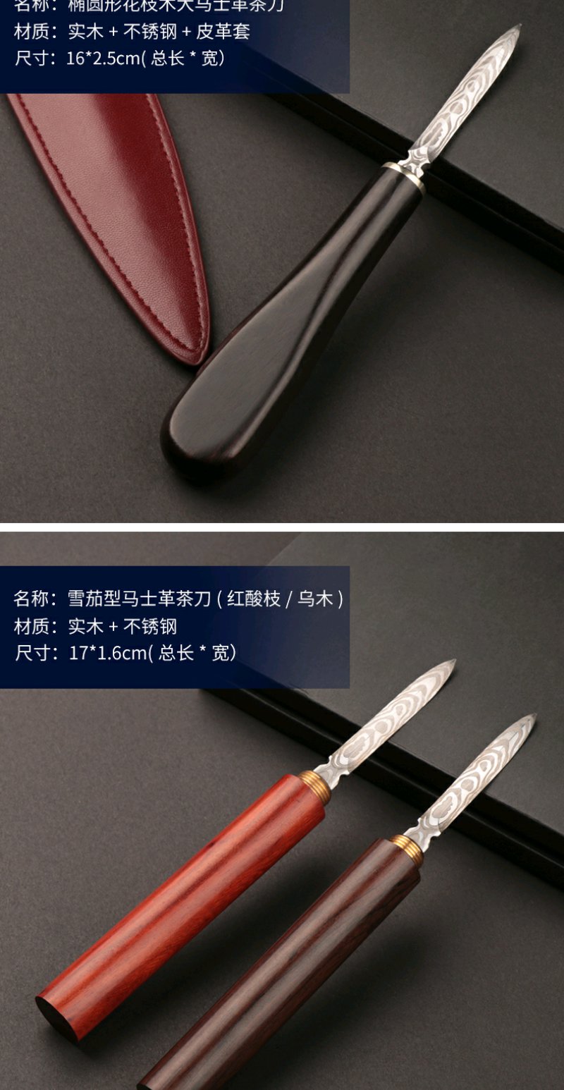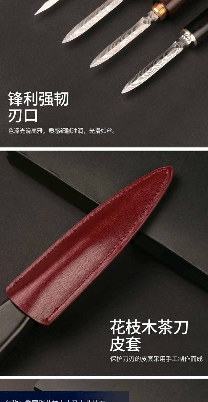 双用茶刀椭圆形花枝木大马士革茶刀雪茄型大马士茶刀竹节式茶刀