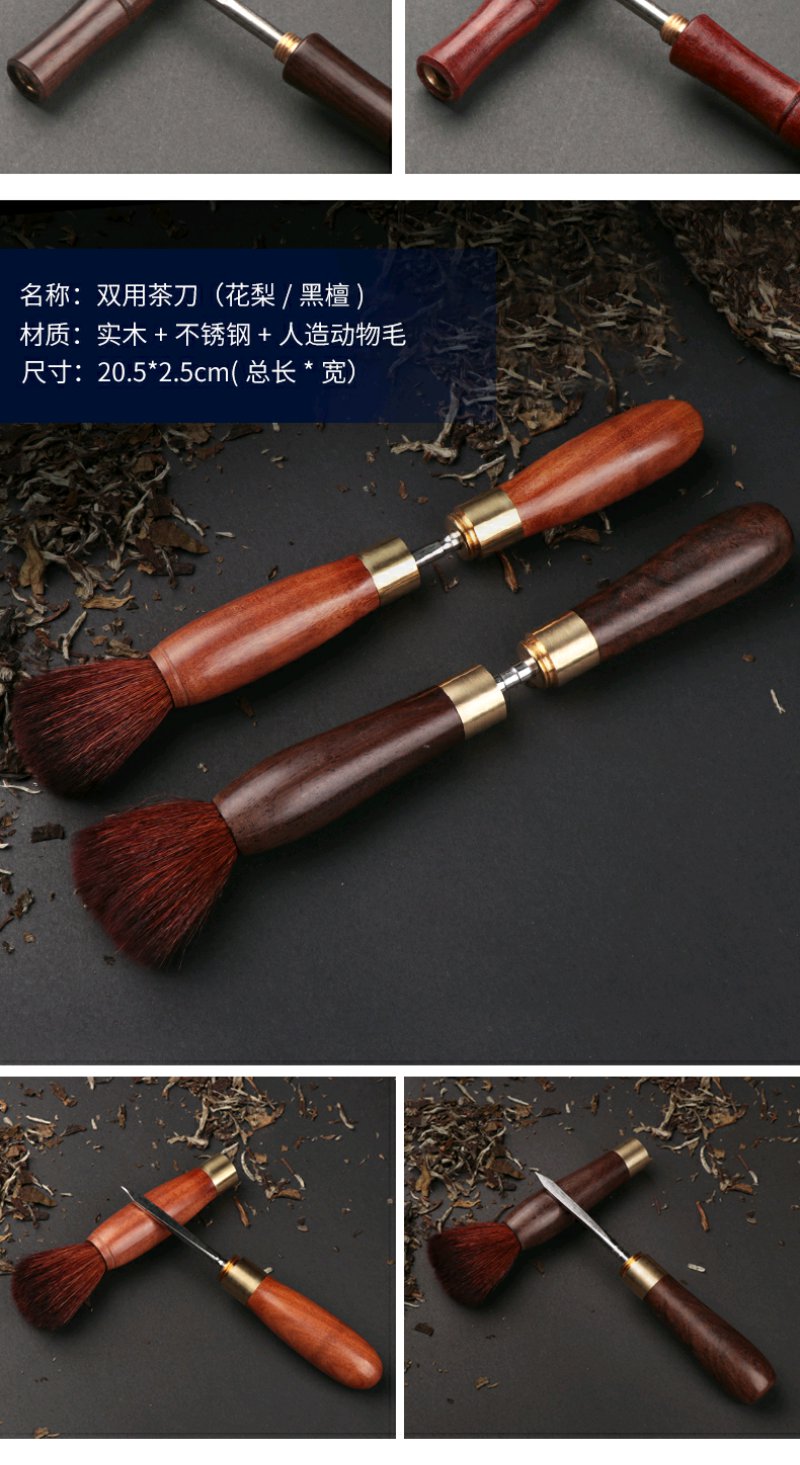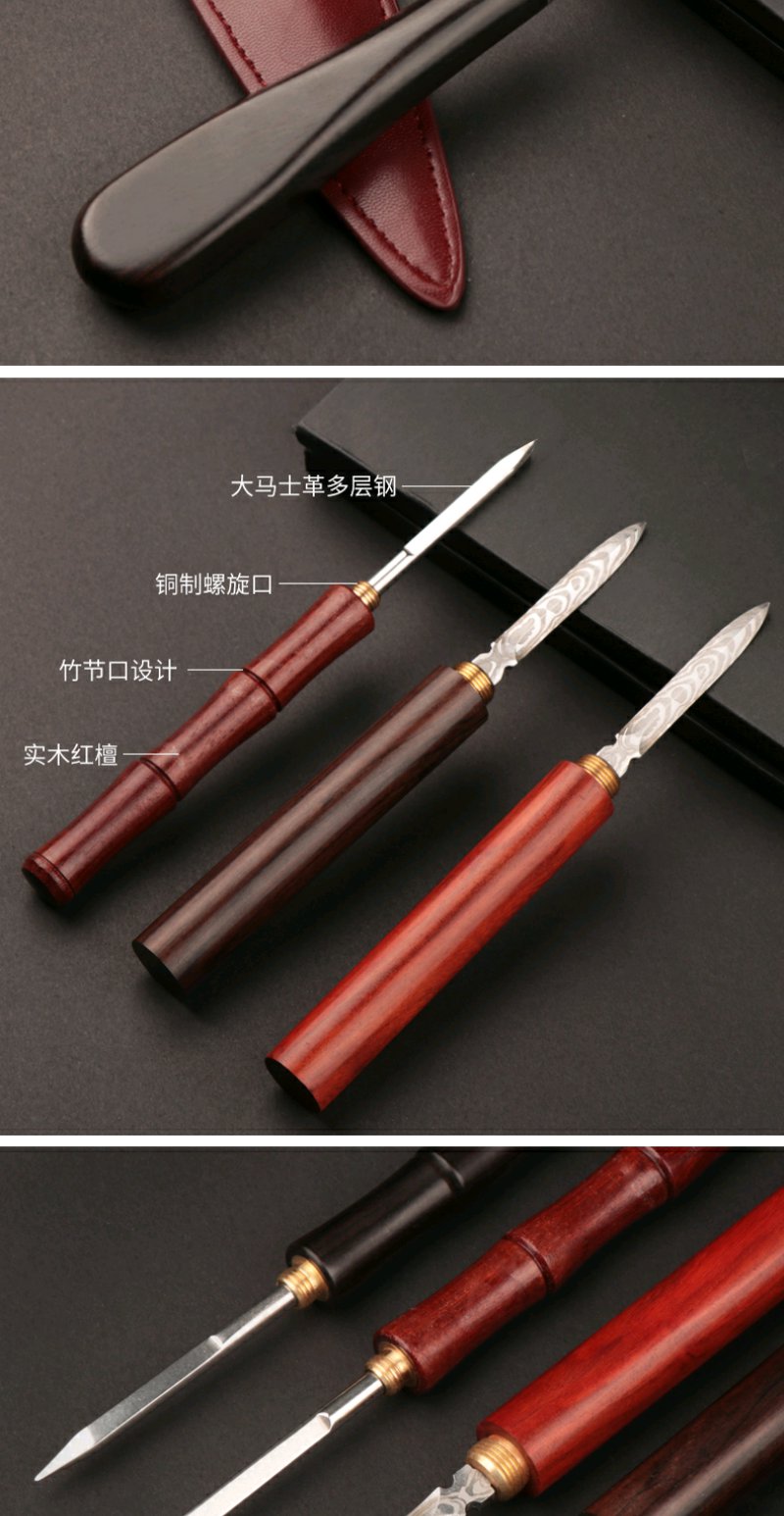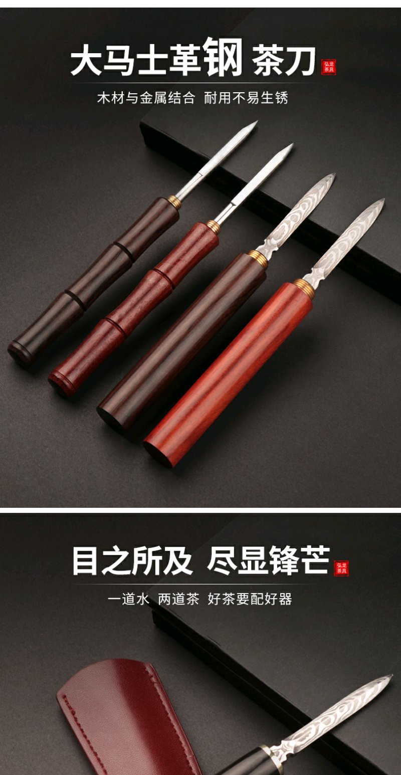 双用茶刀椭圆形花枝木大马士革茶刀雪茄型大马士茶刀竹节式茶刀