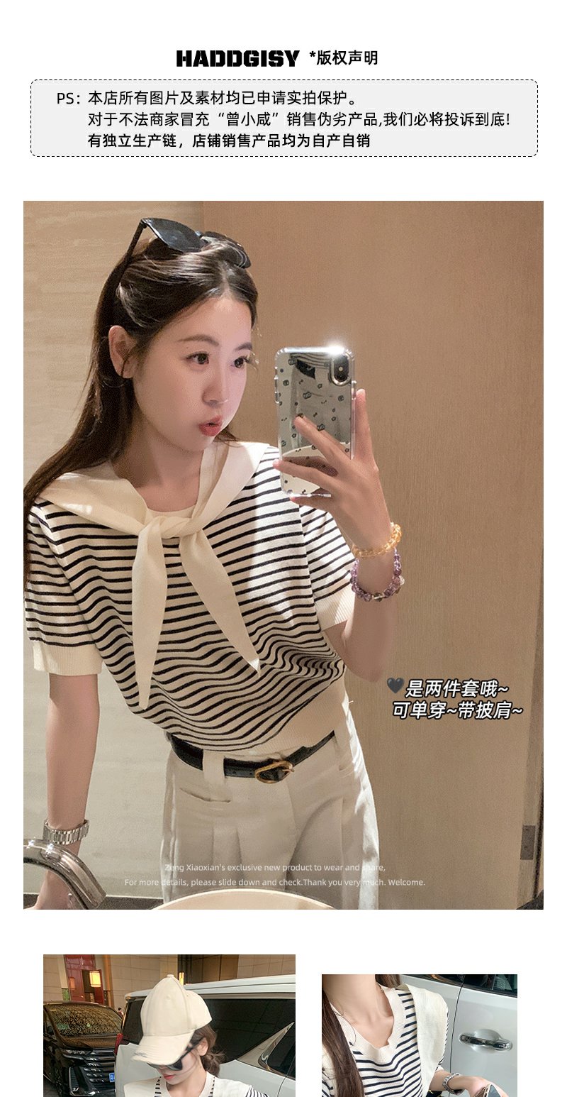 <曾小咸推荐>3.27现货秒杀 !微信超特价!撞色条纹带披肩短袖 日常149.99 立减80 秒杀69.99!!