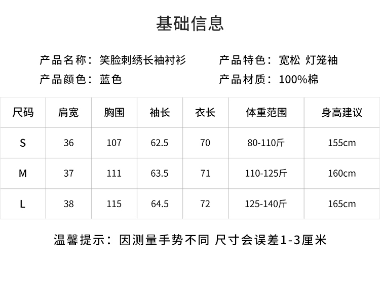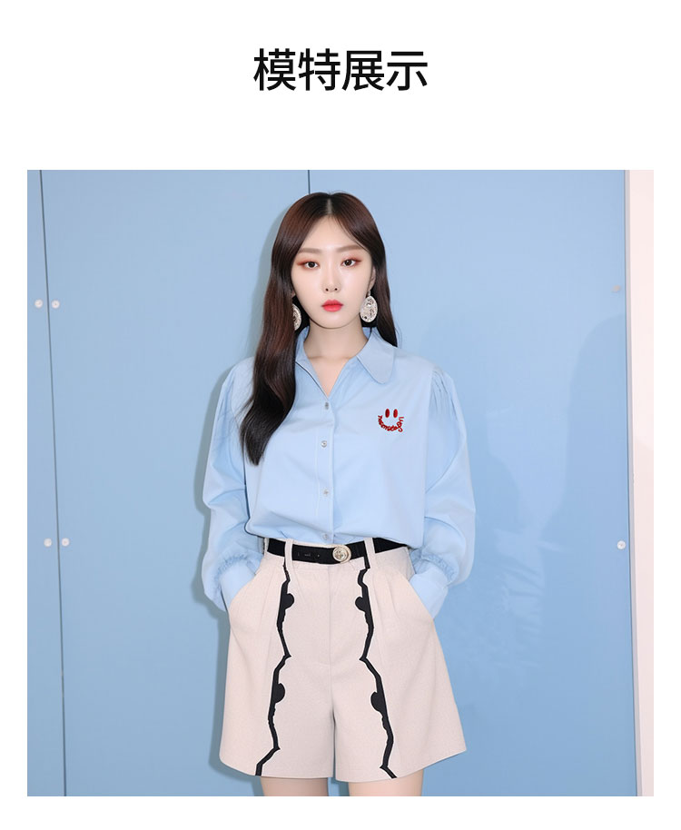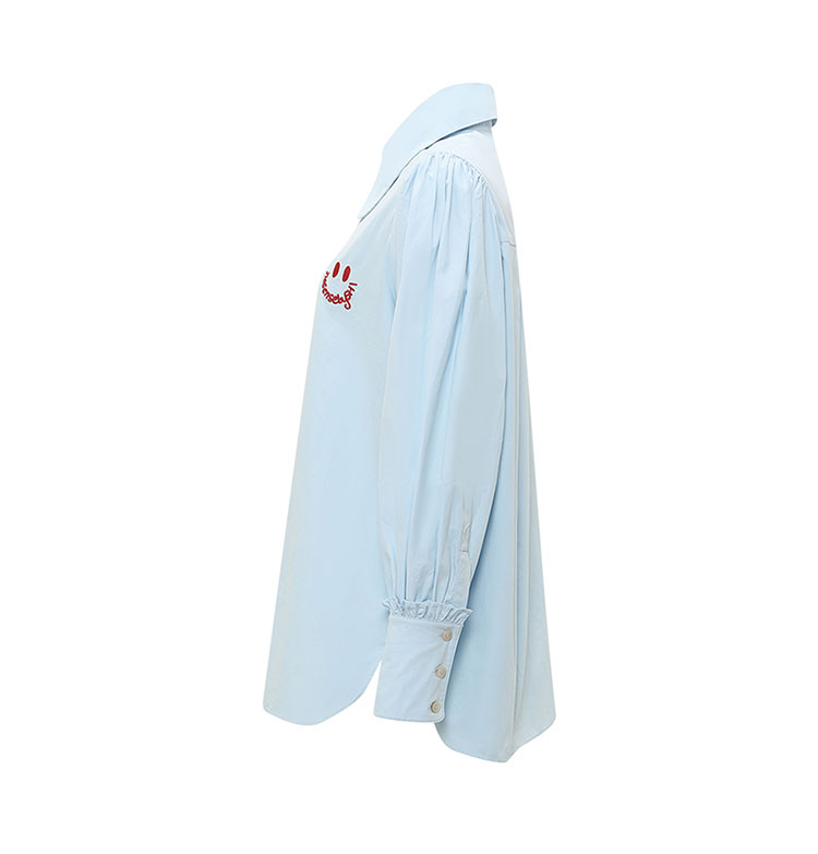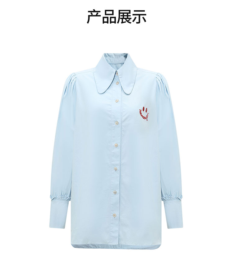 【2件9折】【Petit Bari】笑脸刺绣长袖衬衫复古宽松衬衫简约休闲百搭