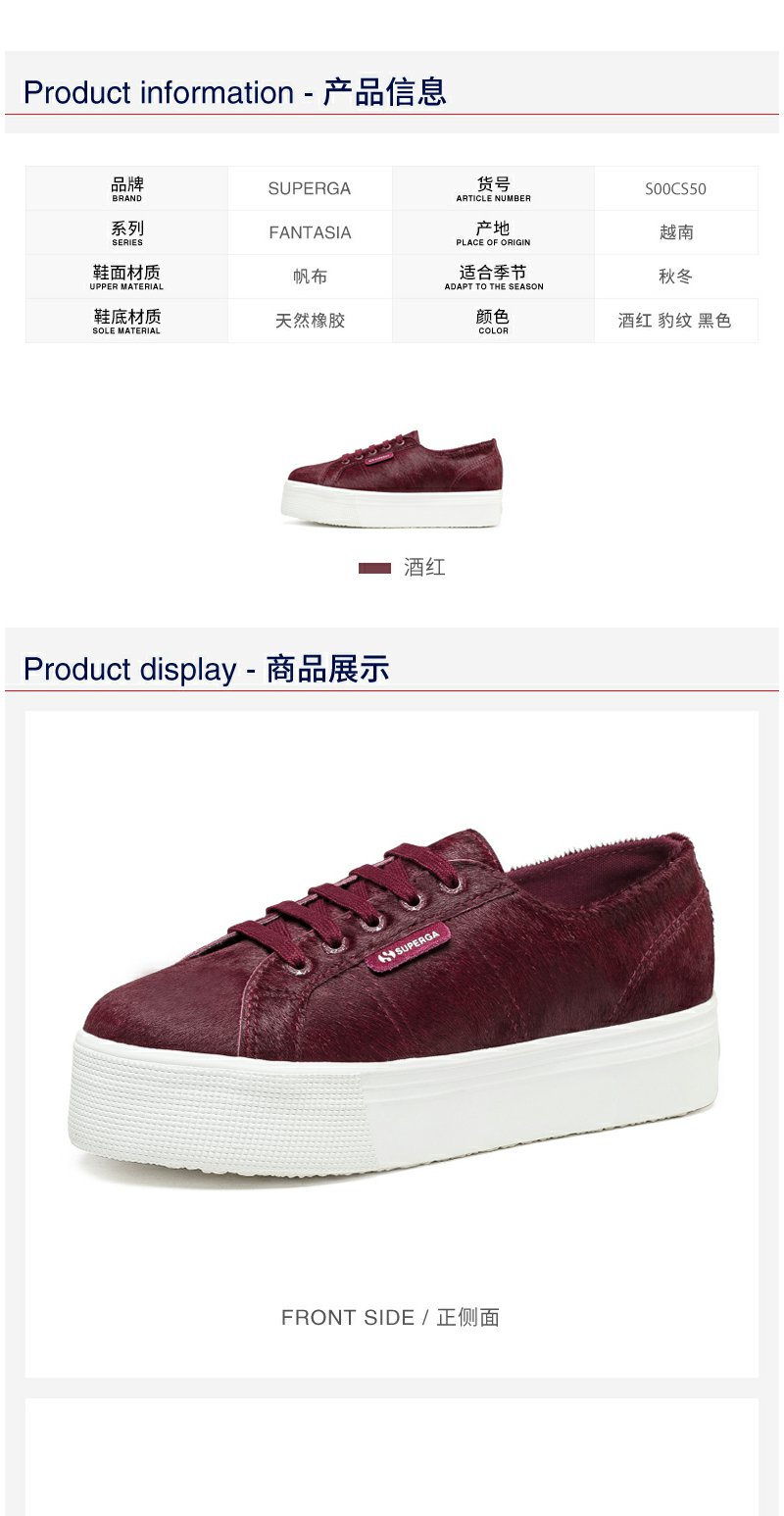 SUPERGA女鞋春夏新款马毛低帮豹纹松糕增高厚底S00CS50帆布鞋女分销