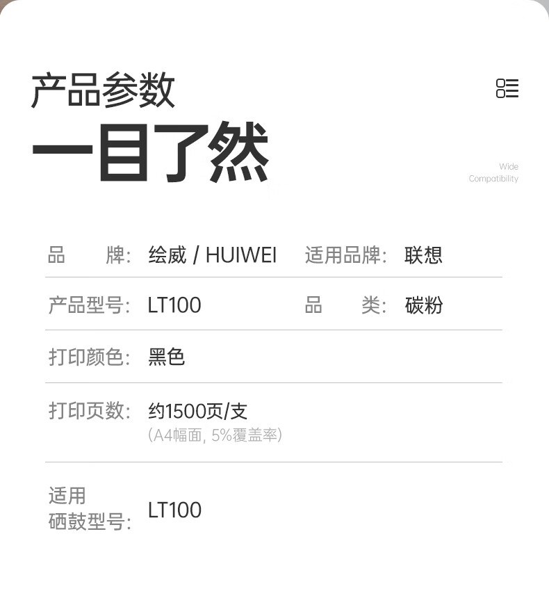 绘威LT100/LT2268碳粉 适用联想领像L100 L100D/W L100DW M100 M100D/W M101D/W M101DW M102W墨粉盒 墨粉