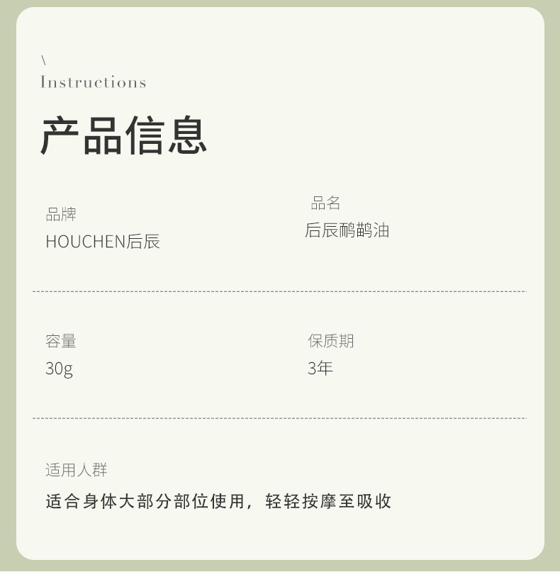 后辰正是基于鸸鹋油的特性,并且根据中国人的肤质