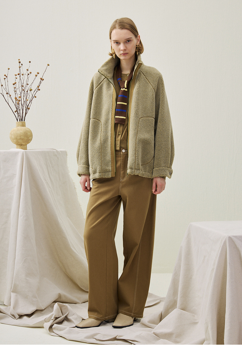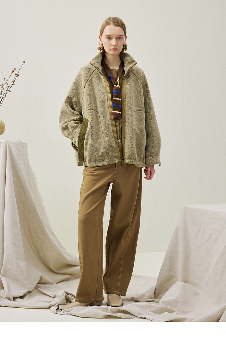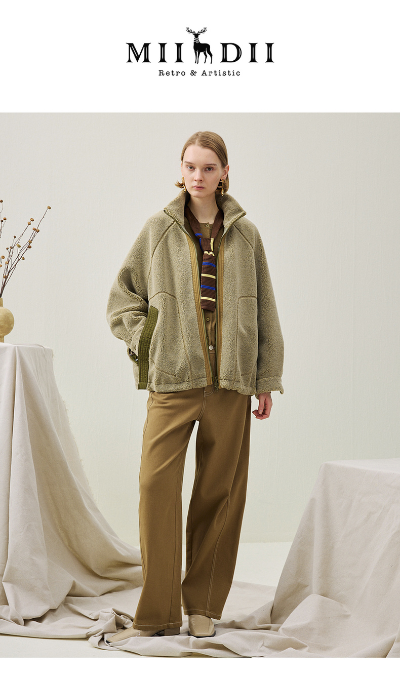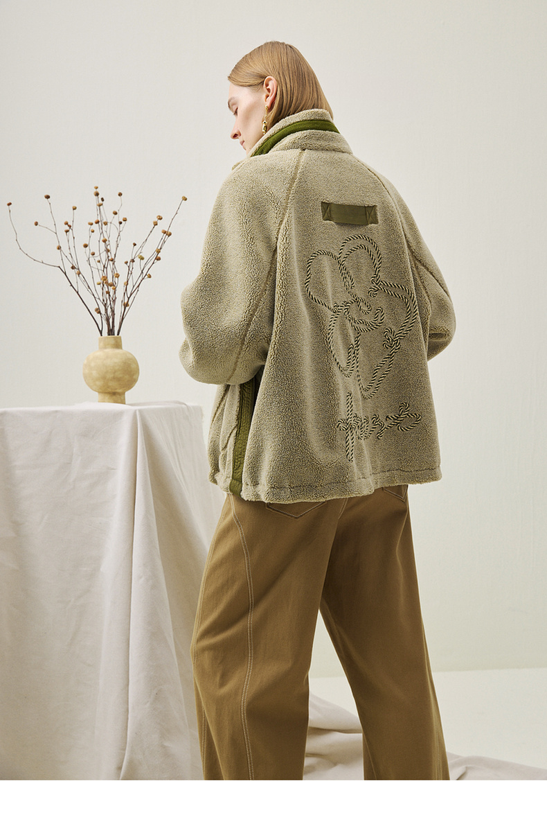 谜底毛毛大衣长袖2025年冬季新品保暖大廓形舒适绣花女254MD1674