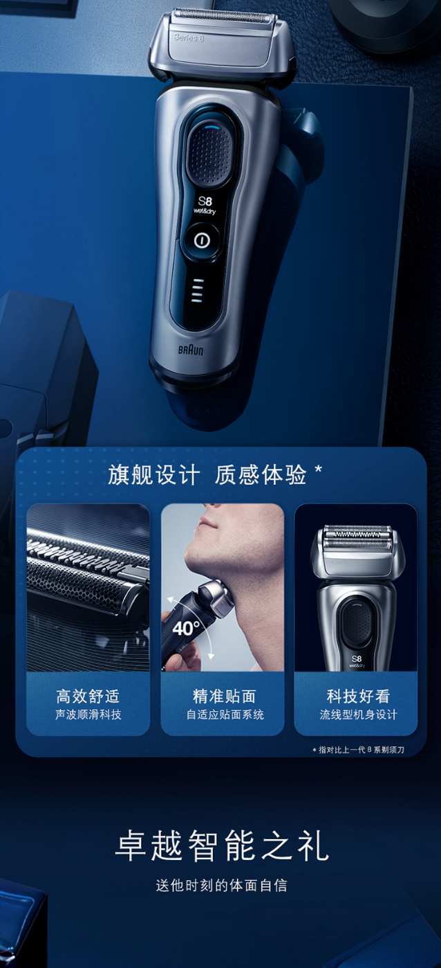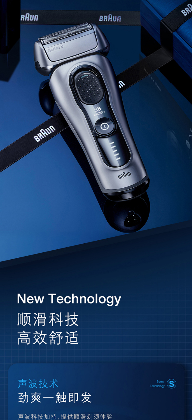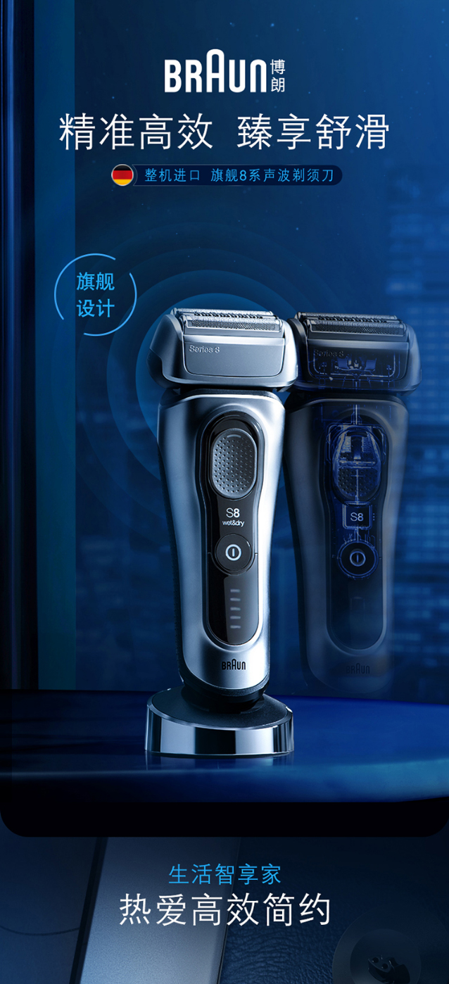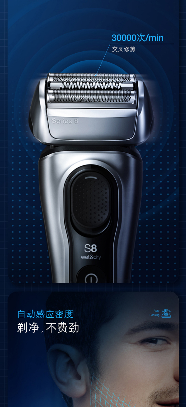 博朗德国进口男士往复式电动剃须刀 8系升级款声波电动剃须刀8567CC