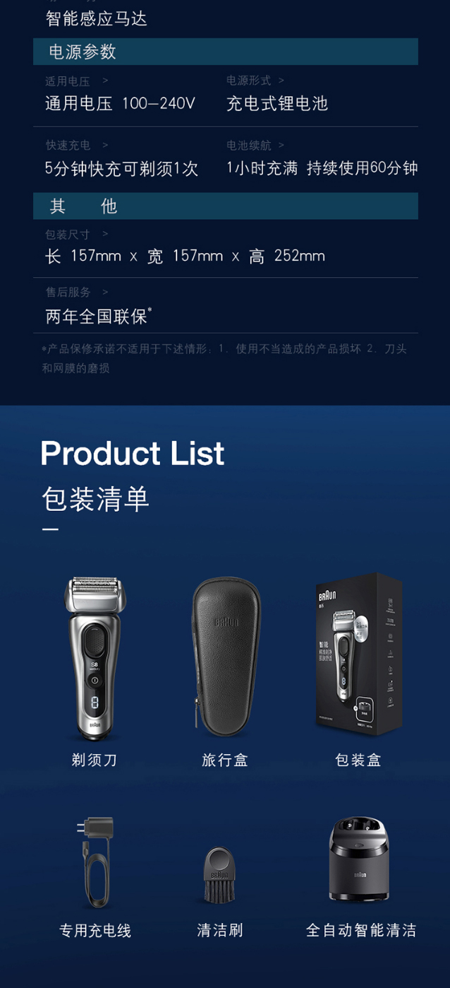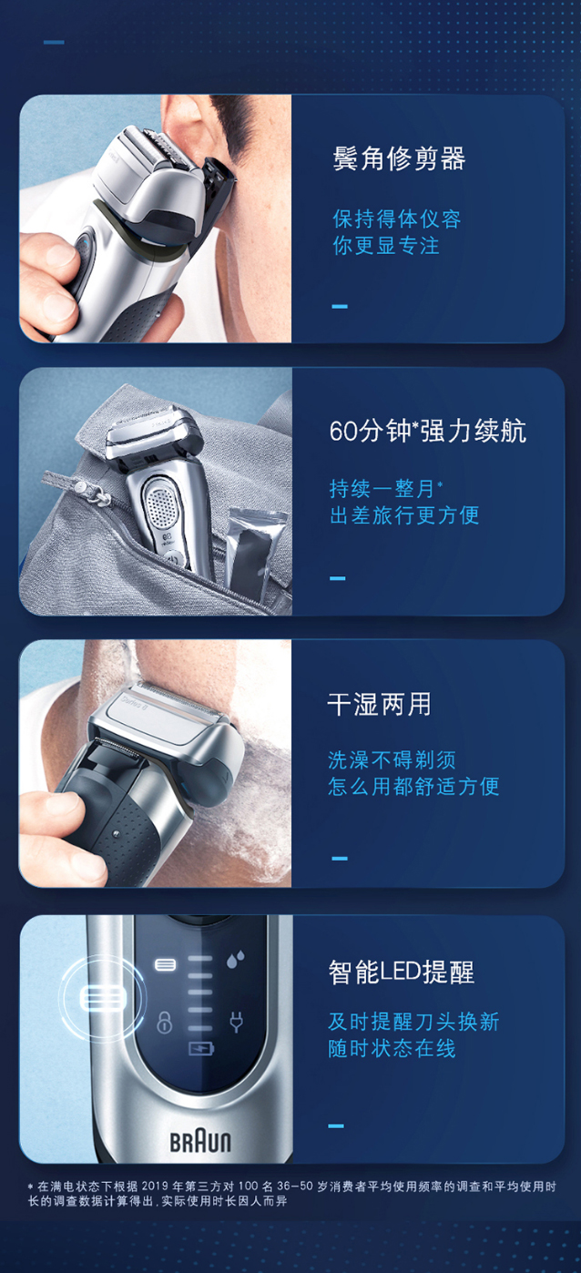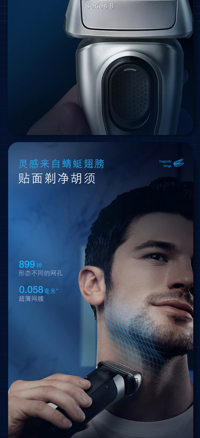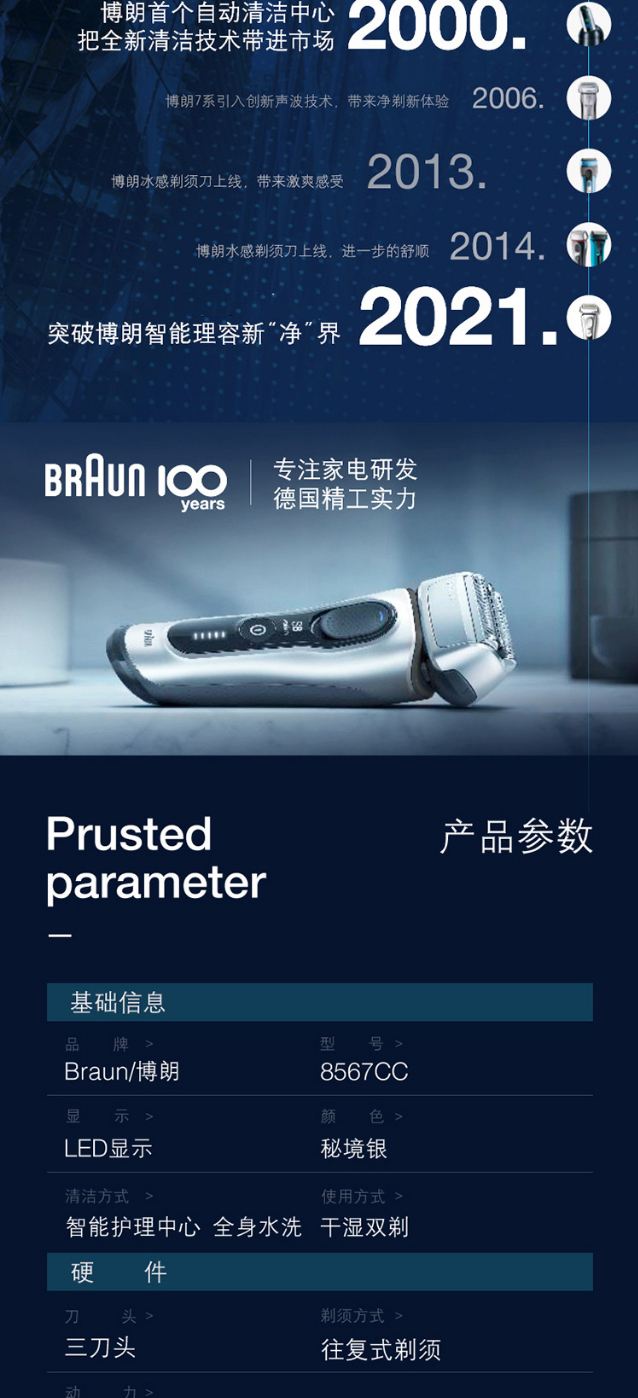 博朗德国进口男士往复式电动剃须刀 8系升级款声波电动剃须刀8567CC