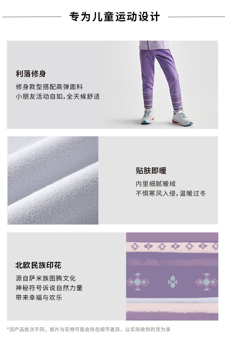 moodytiger女童长裤2022冬新款印花加绒保暖休闲运动裤| 欧若拉 M24211301