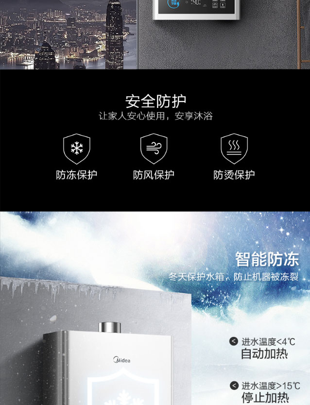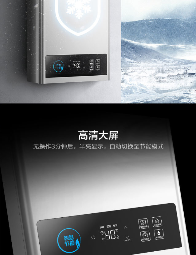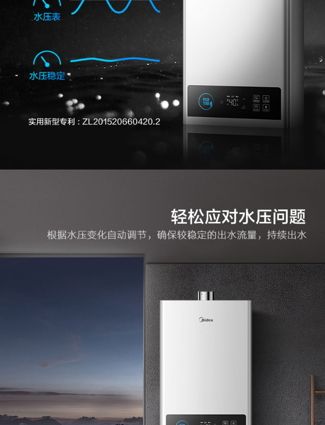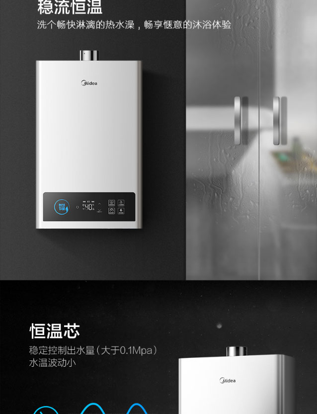 美的12L天燃气热水器 智能wifi操控 高清大屏 节能省气 稳流恒温JSQ22-12HCM