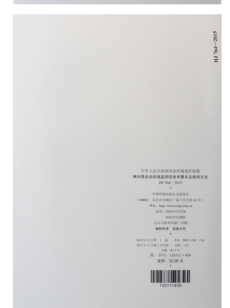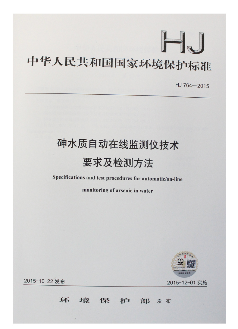 HJ 764-2015 砷水质自动在线监测仪技术 要求及检测方法 国家标准 国标 GB 环境科学 环境保护 135111430