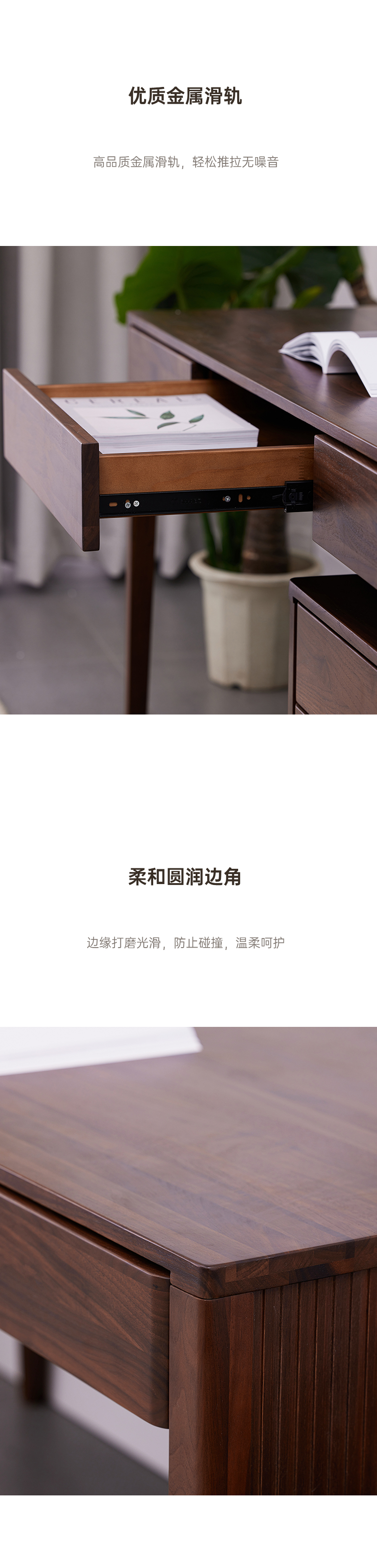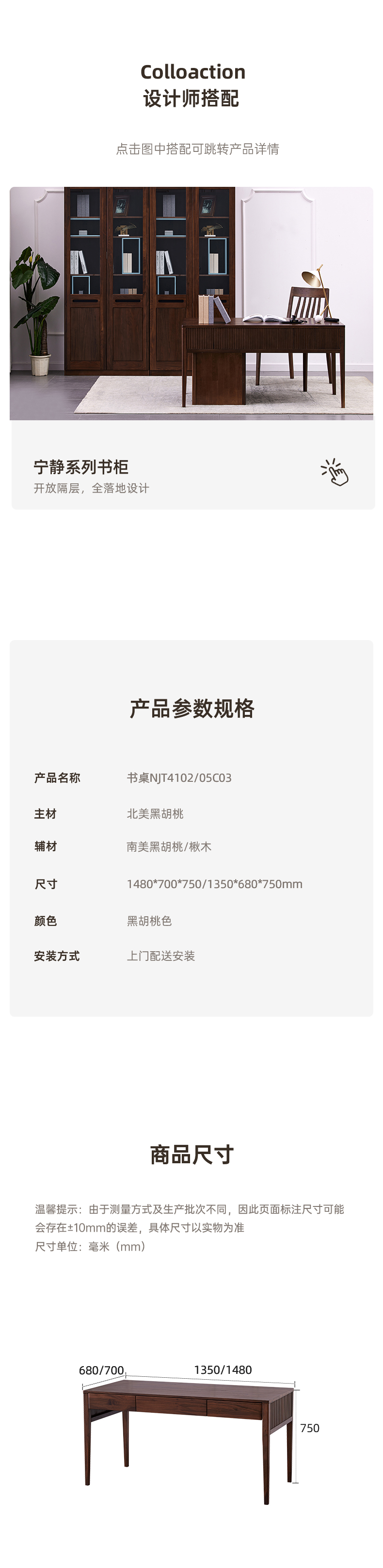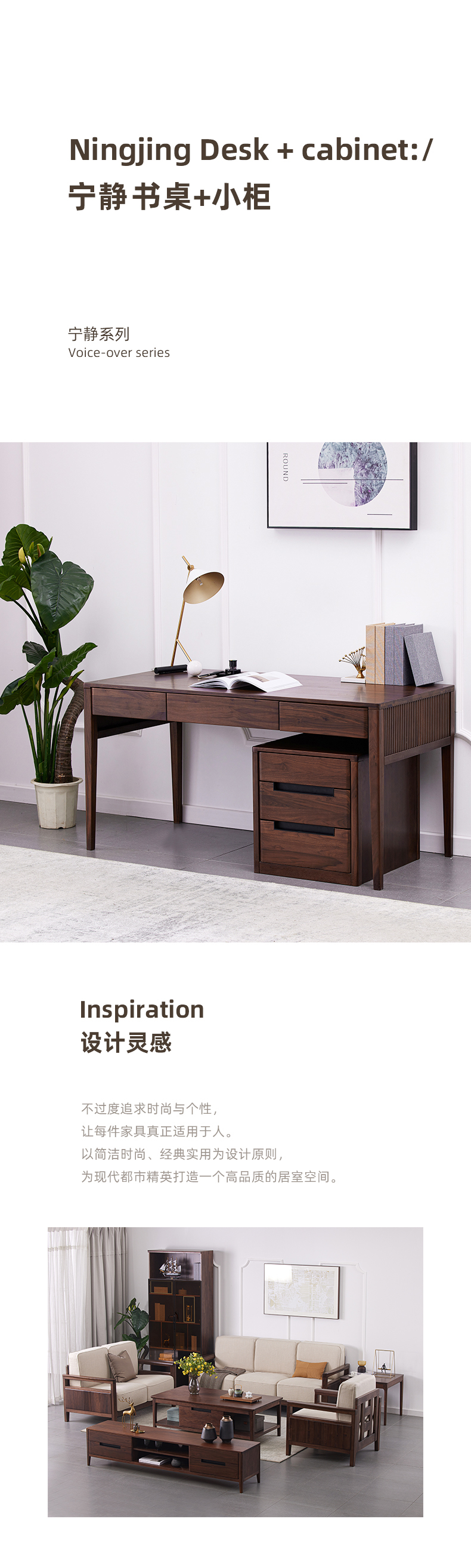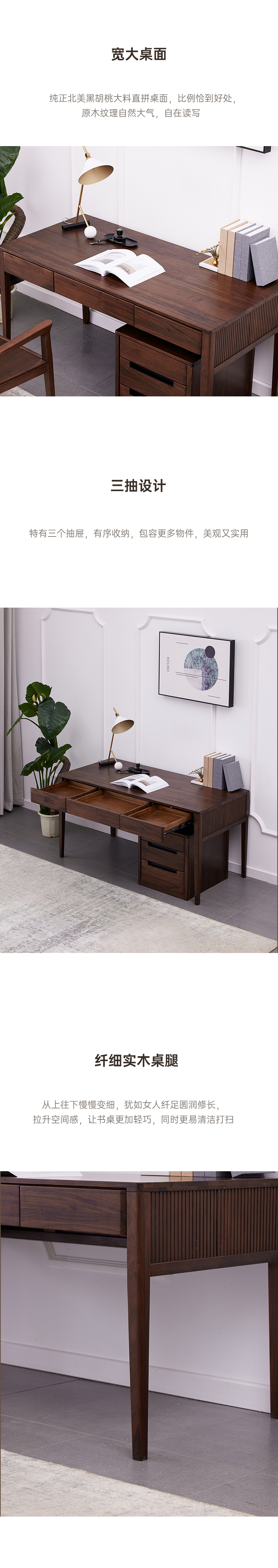 【现代实木风-NJT4102书桌】现代实木/现代简约/书房/北美黑胡桃/实木书桌+小柜