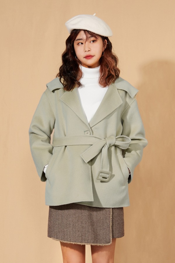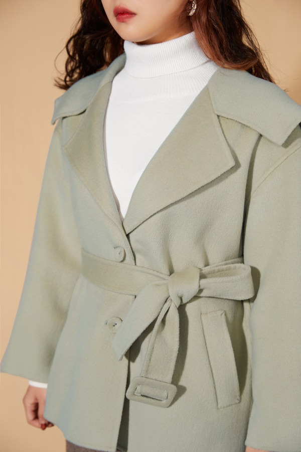 amadella 灰绿短款羊毛双面呢大衣 10127