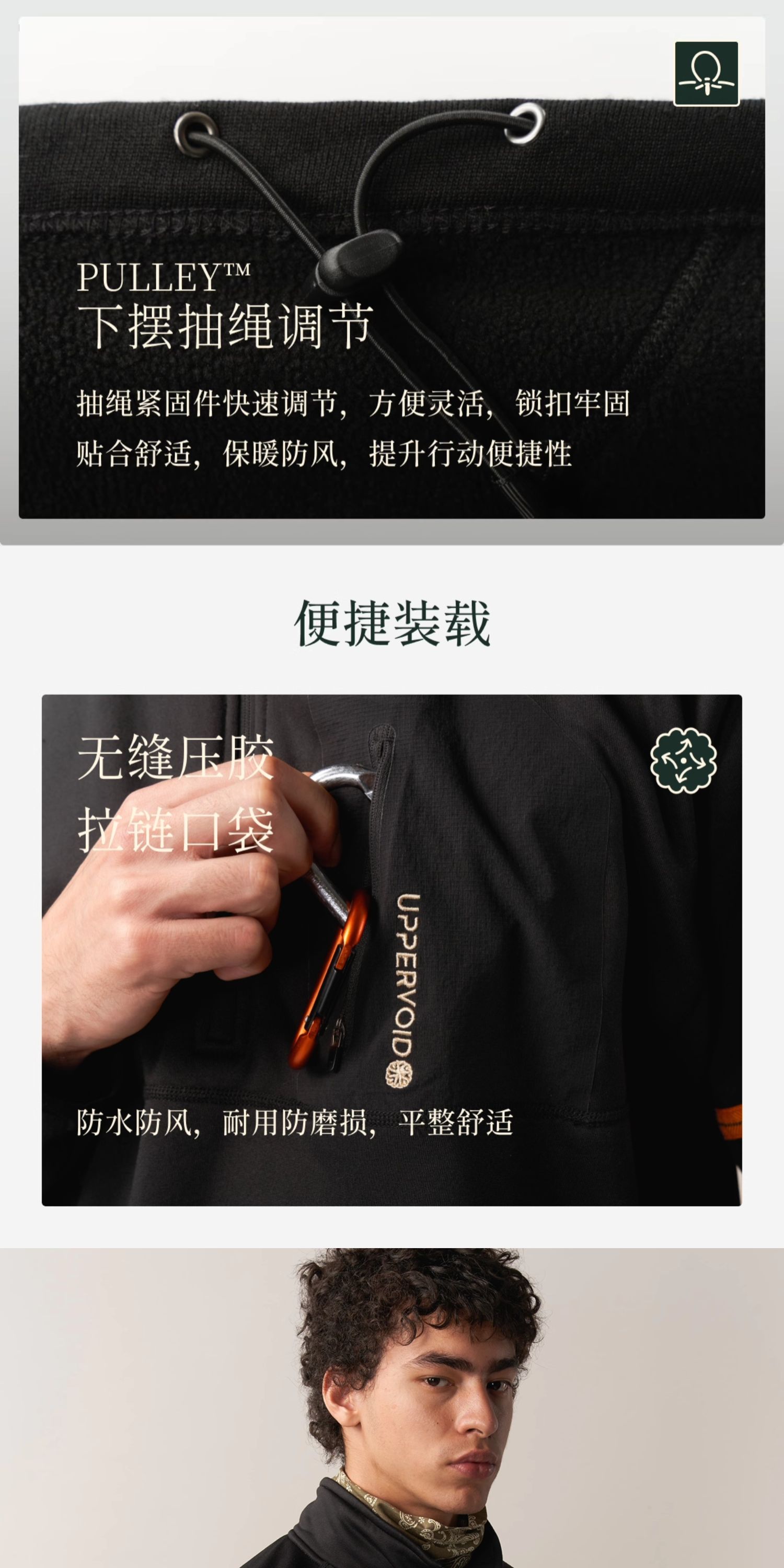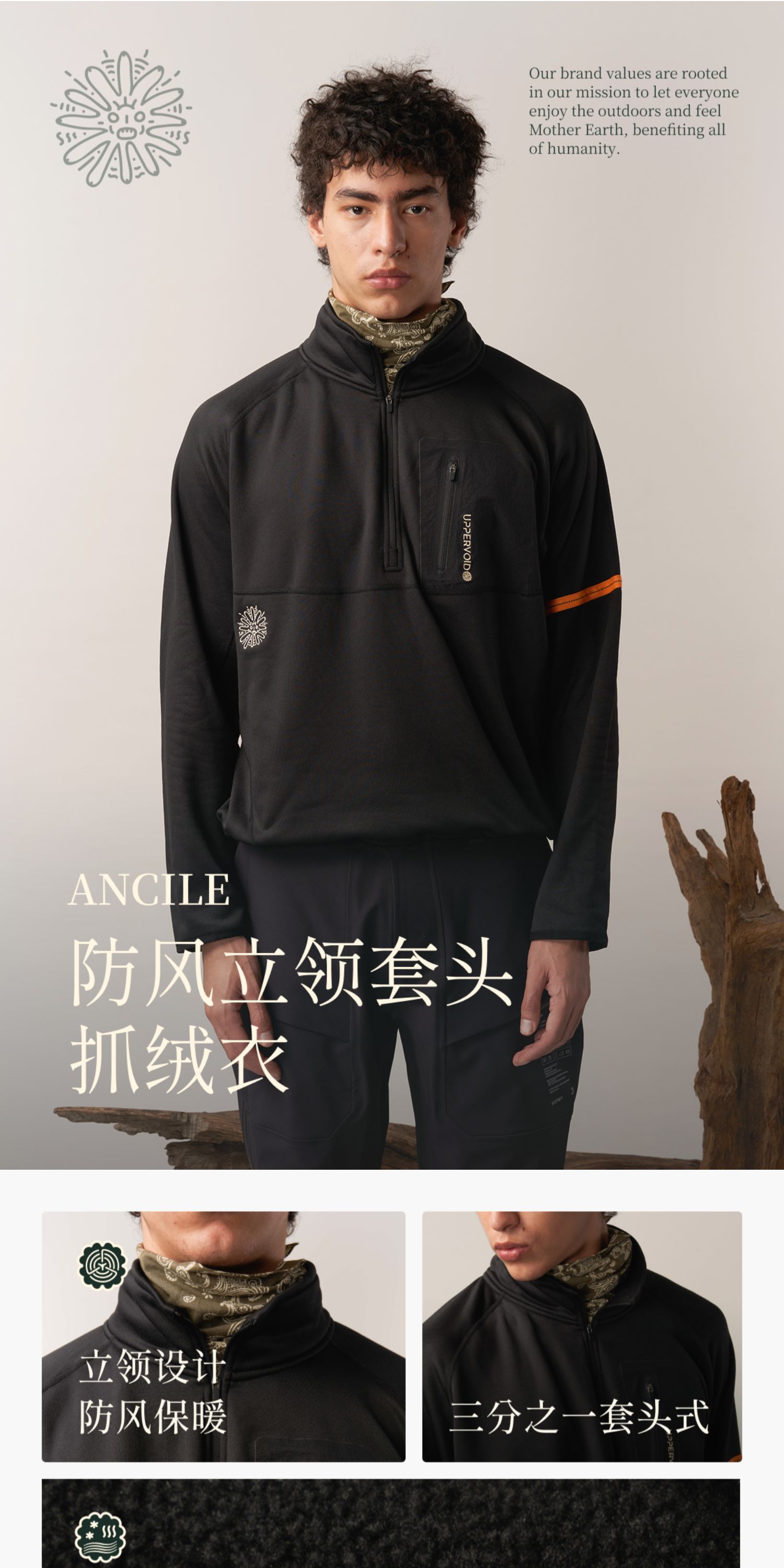 ANCILE单面抓绒衫户外防风保暖运动外套男款UPPERVOID二普纬度