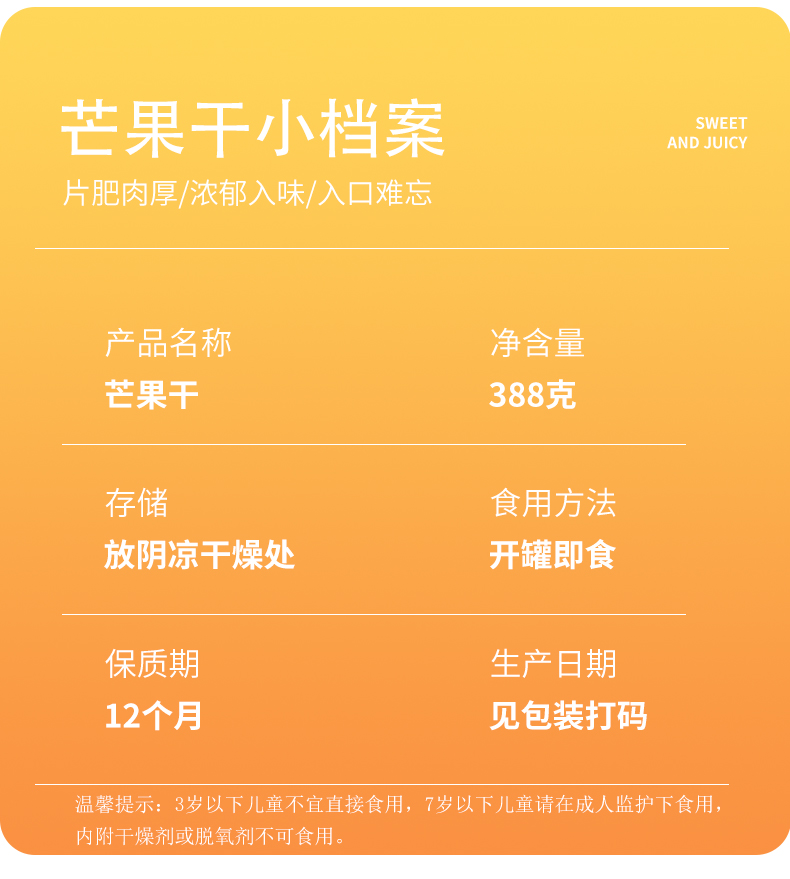 天生好果芒果干388克【XPTX】
