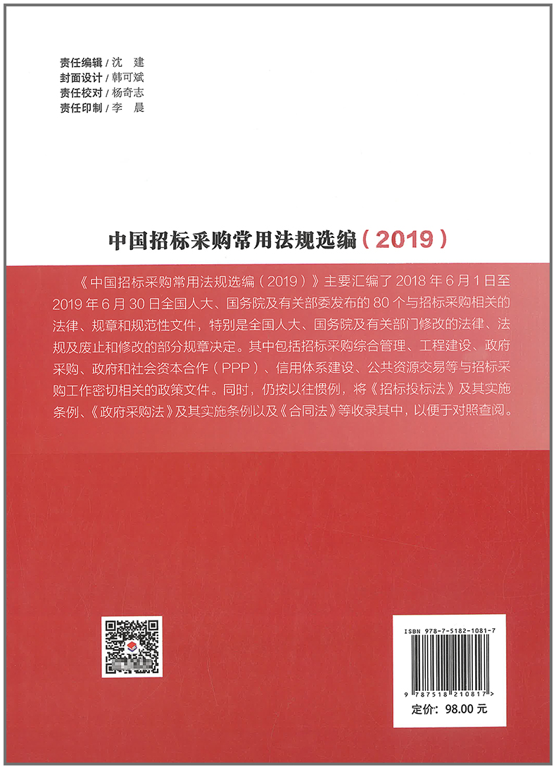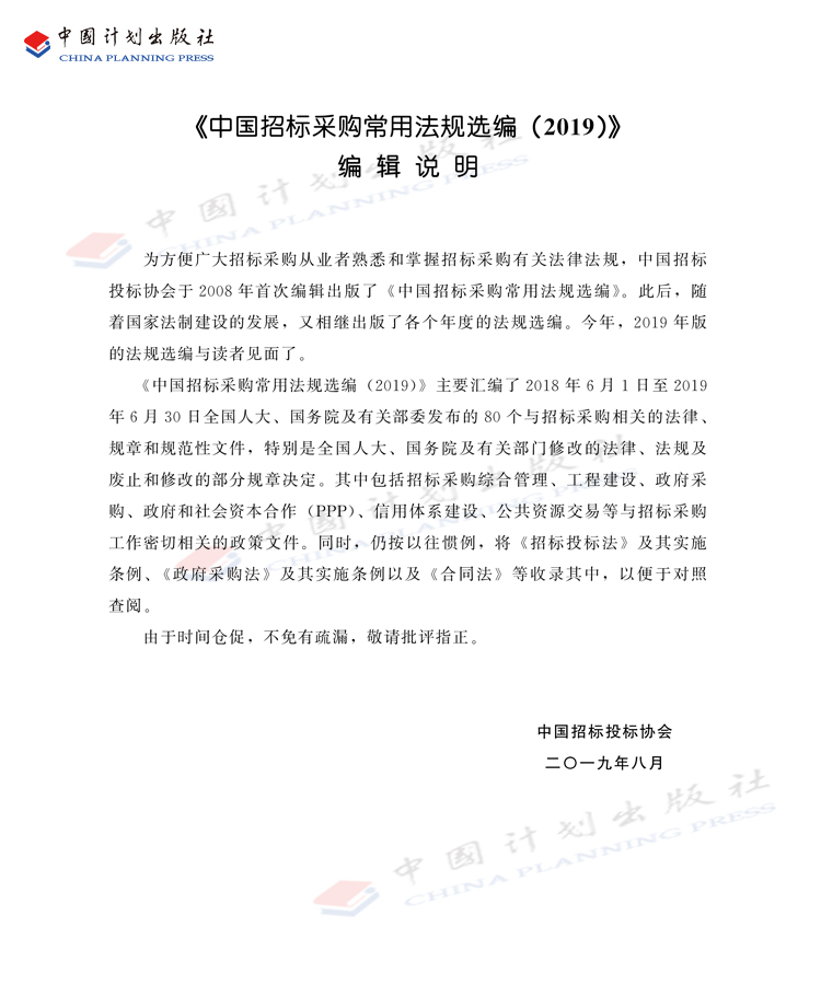 | 正版现货 中国招标采购常用法规选编(2019) 招标投标法 政府采购法 合同法 招标投标用书 中国计划出版社 978751821081 | ||