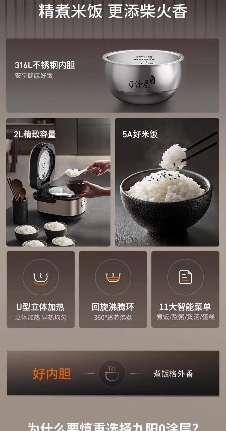 九阳F-20F081L 0涂层钢釜电饭煲[DQ6] 商品图7