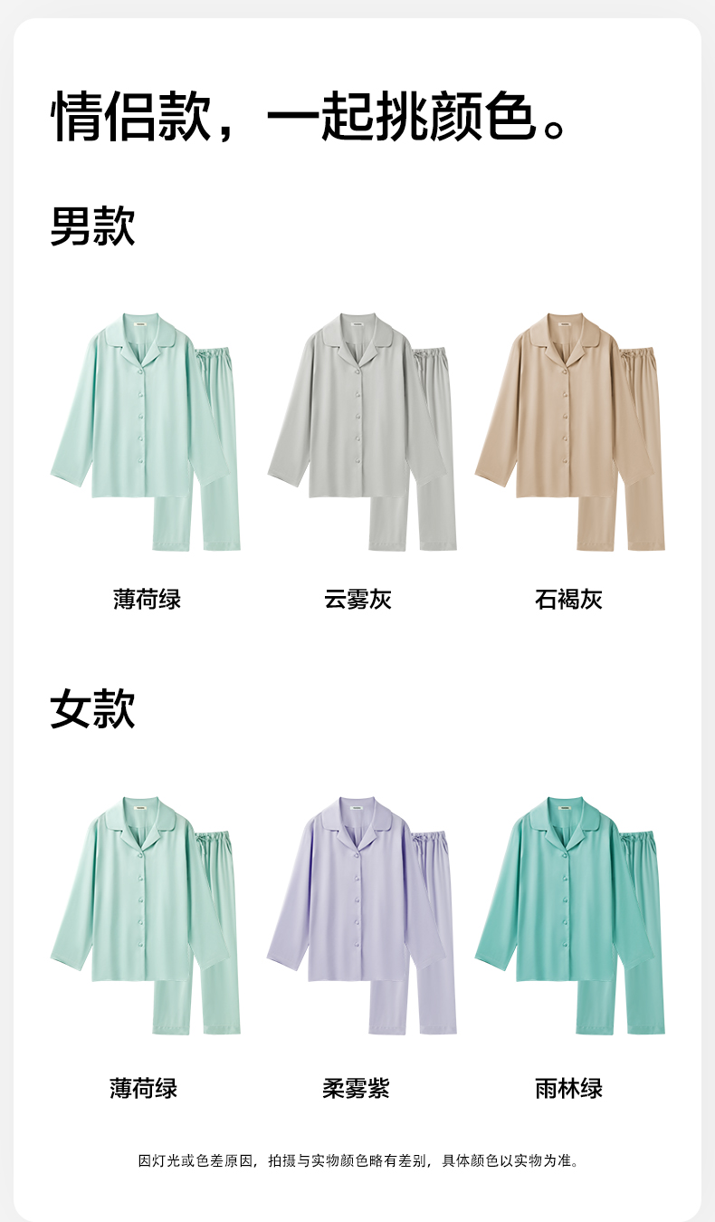 有棵树夏季缎面抗皱情侣家居服套装-S0015