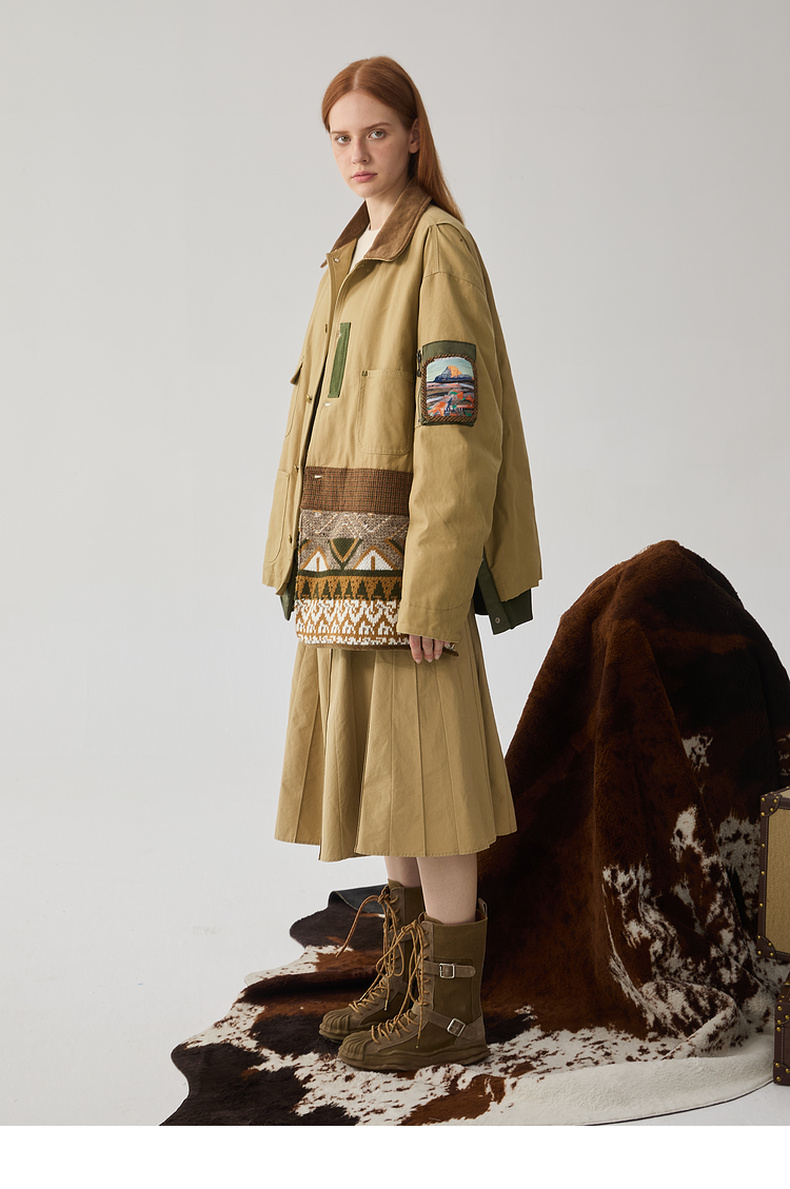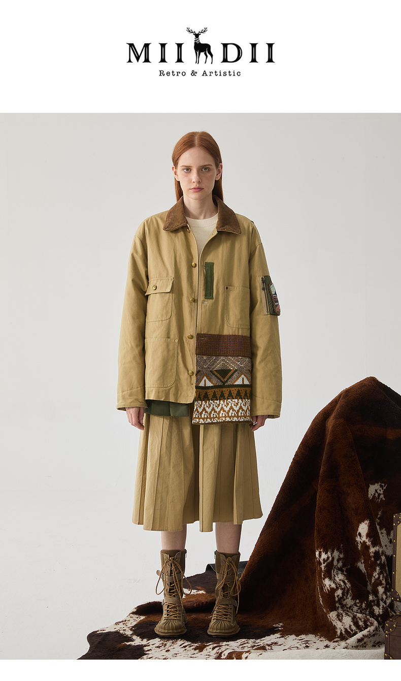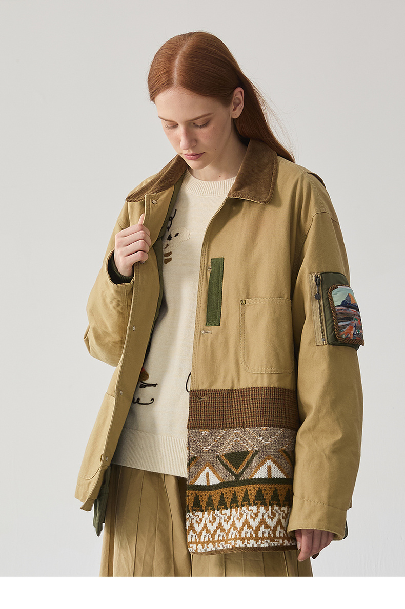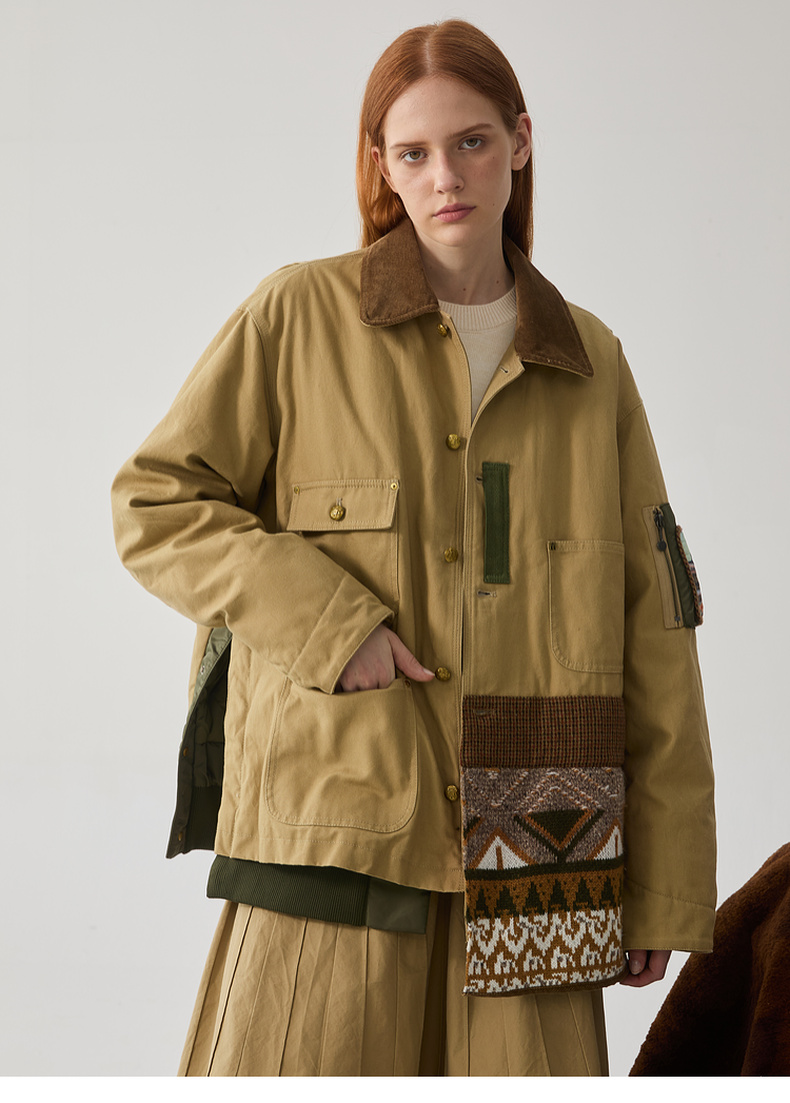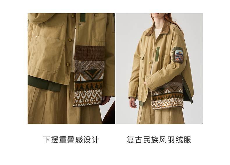 谜底拼接感羽绒服女2024冬季新品复古工装风宽松鸭绒服244MY1674