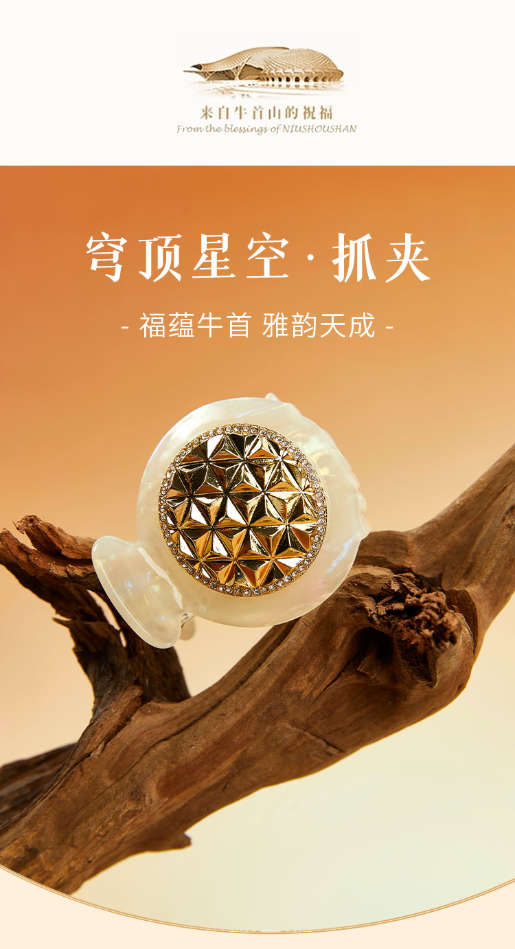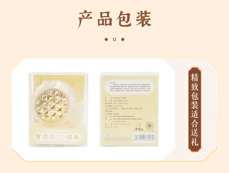 牛首山文创穹顶星空抓夹佛顶宫造型外观气质发夹时尚百搭金色发饰