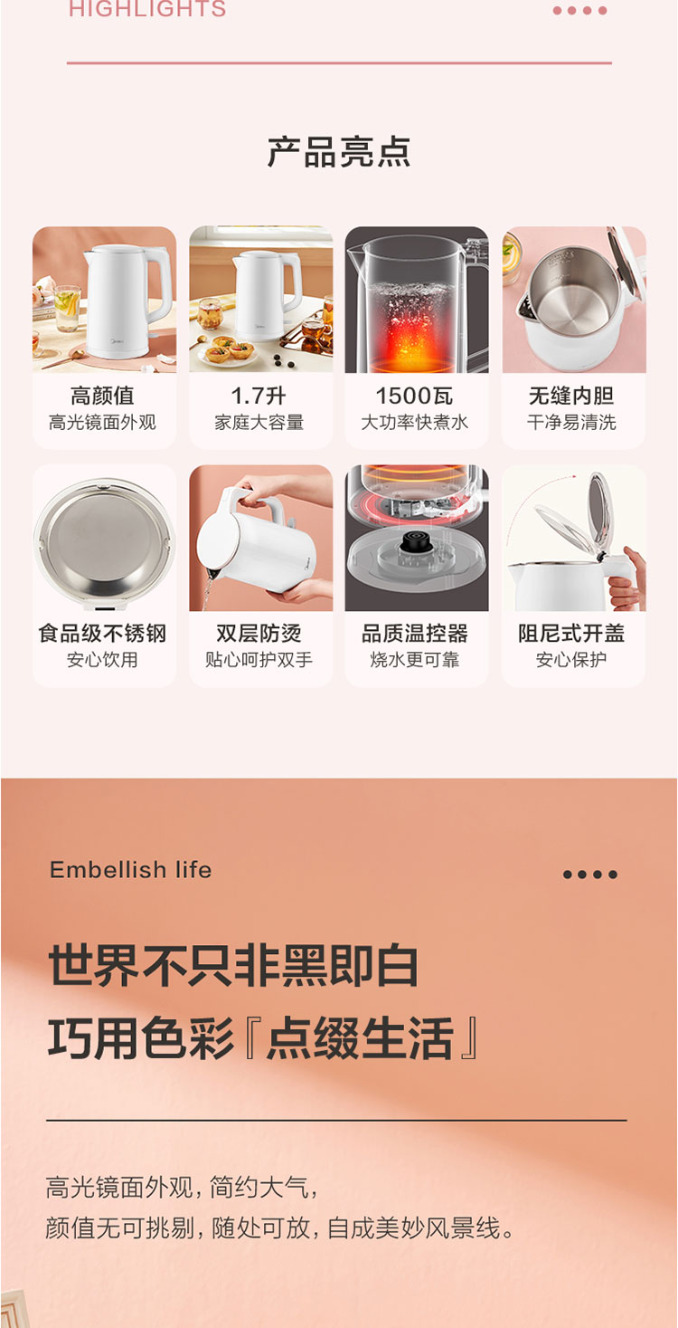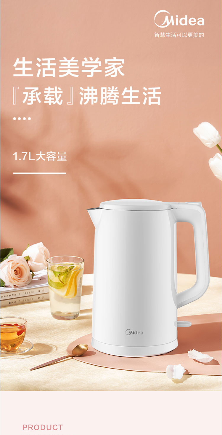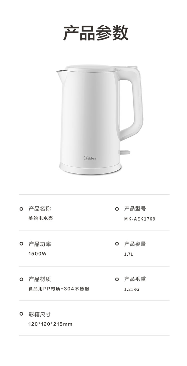 美的(Midea)1.7L大容量电热水壶AEK1769