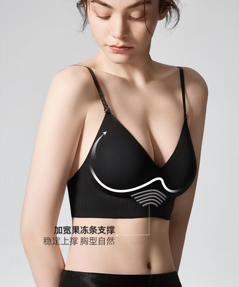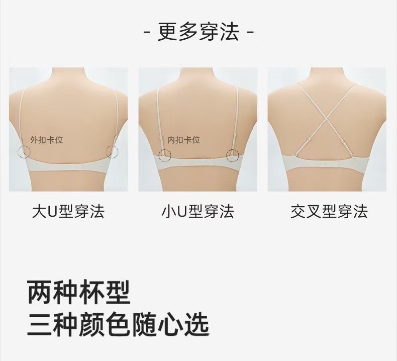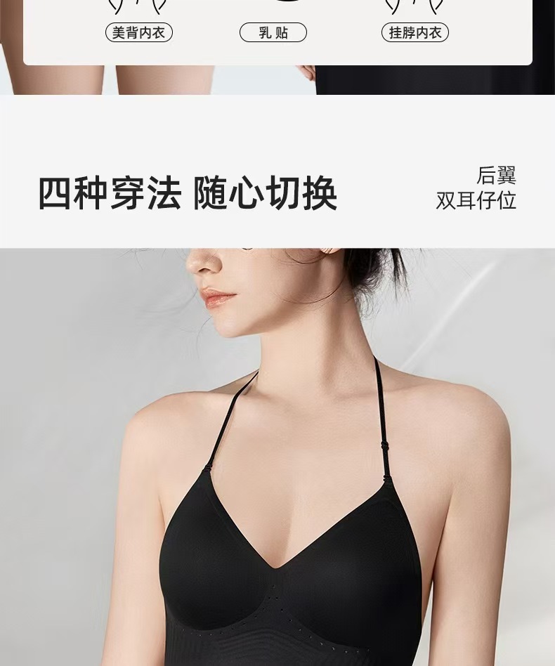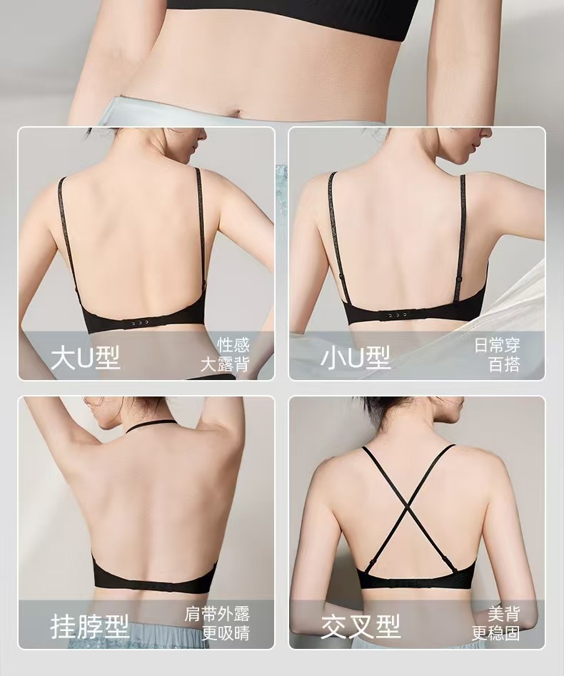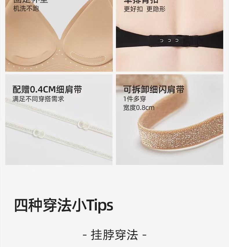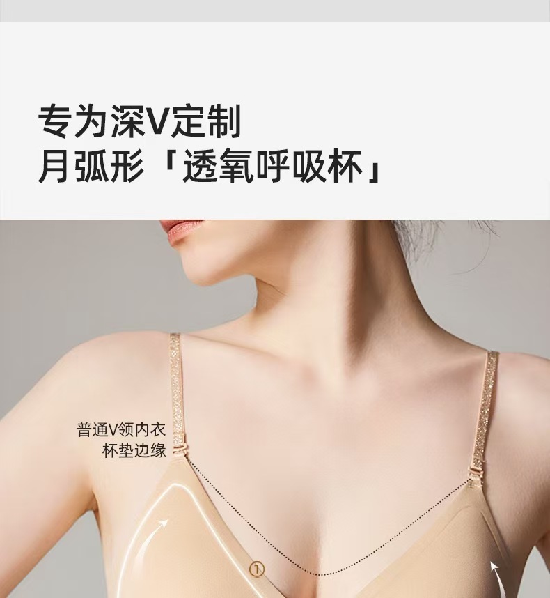 幸棉同款无痕深V挂脖美背粉底液内衣大U背亮闪肩带聚拢细肩带文胸