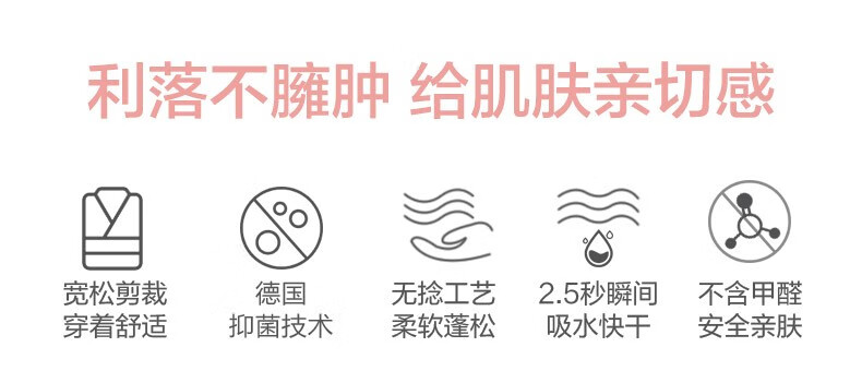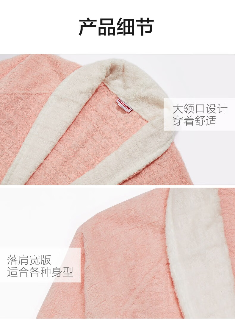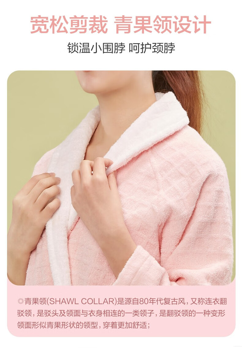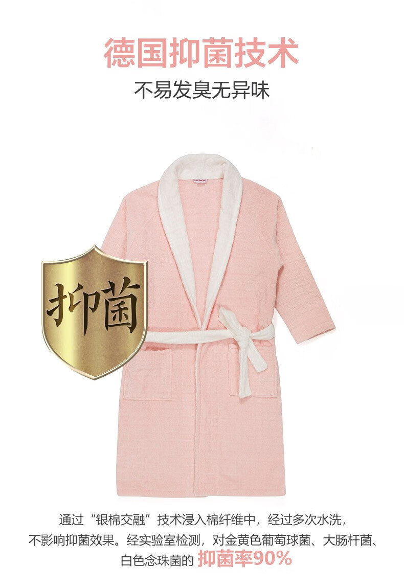 【多样屋专柜】多样屋浴袍抑菌全棉吸水纯棉抑菌毛巾料家居睡袍浴衣情侣浴袍莫兰迪 桃粉/M