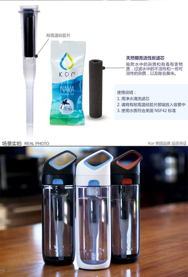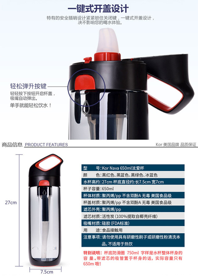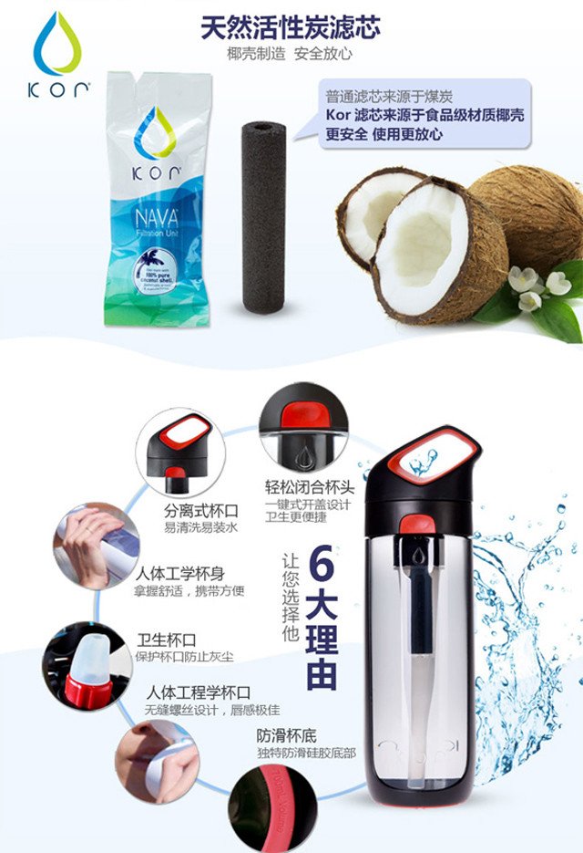 【亏本清仓】美国Kor Nava泫爱 椰壳活性碳过滤运动水杯650ml(不支持无理由退换)[福利品]