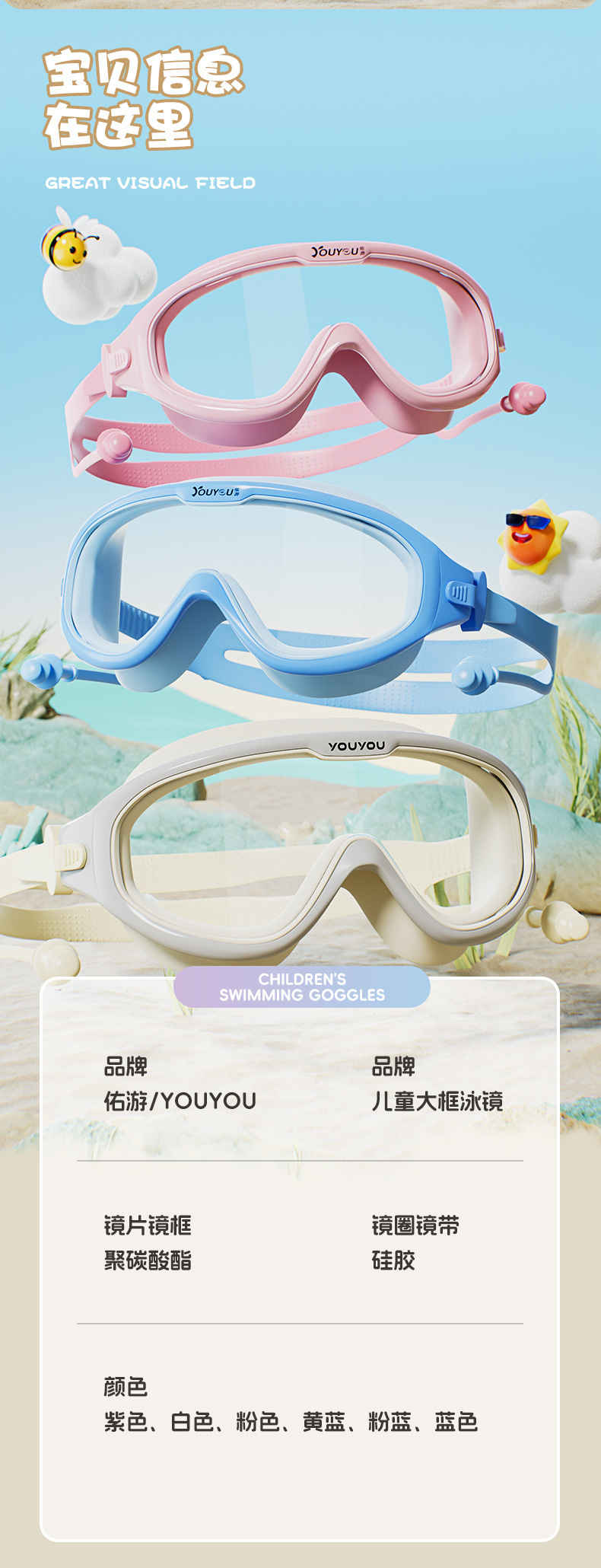 儿童泳镜泳帽高清防水防雾大框专业游泳眼镜男童女童潜水套装批发
